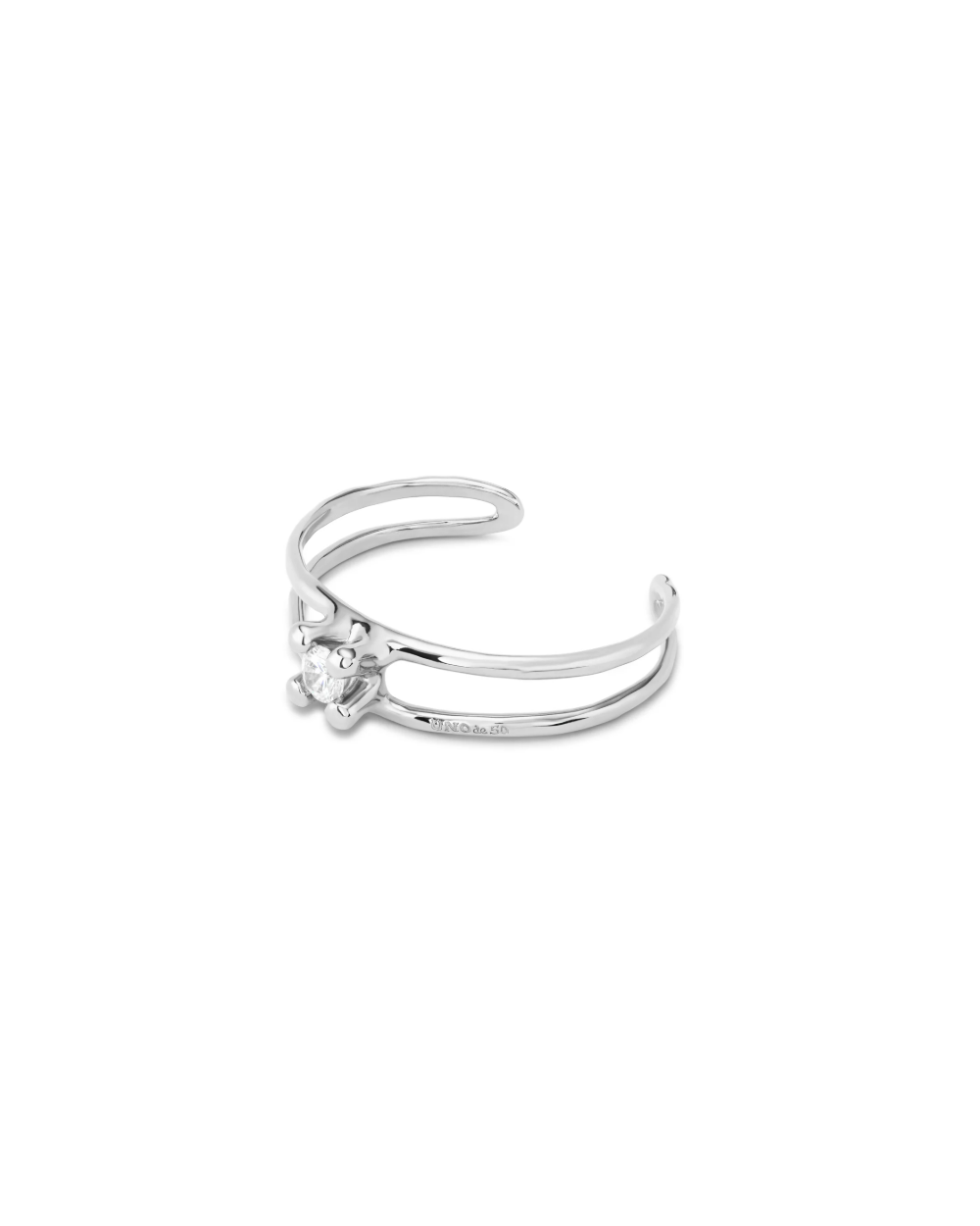 Colección Spiritual, el alma y su espiritualidad. La liberación que cada uno de nosotros busca. Una introspección para poder sentirnos felices, en paz, en calma. Joyas femeninas y elegantes que combinan el metal con cristales artesanales de pequeño formato en blanco y azul, representando así el cosmos, lo divino. Garras de gran tamaño que sujetan los cristales y destacan la importancia de la plata o el oro.