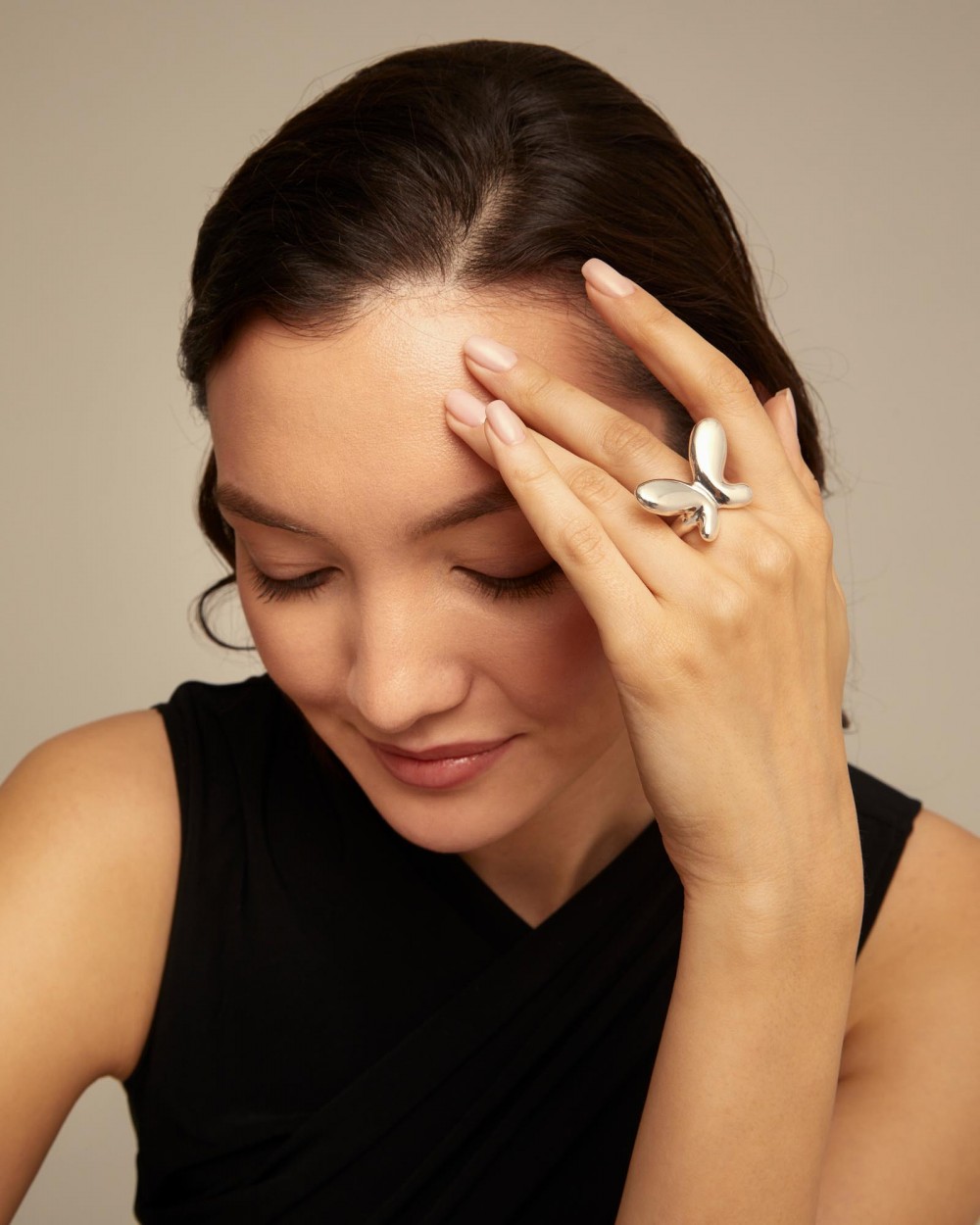 Anillo bañado en plata de ley con una mariposa central. Una joya hecha en España elaborada 100% artesanalmente. Inspirada en elementos de la naturaleza siempre presentes en la historia de UNOde50, la colección Free incluye joyas como este anillo de gran volumen, protagonizado por una mariposa central en tamaño mediano.