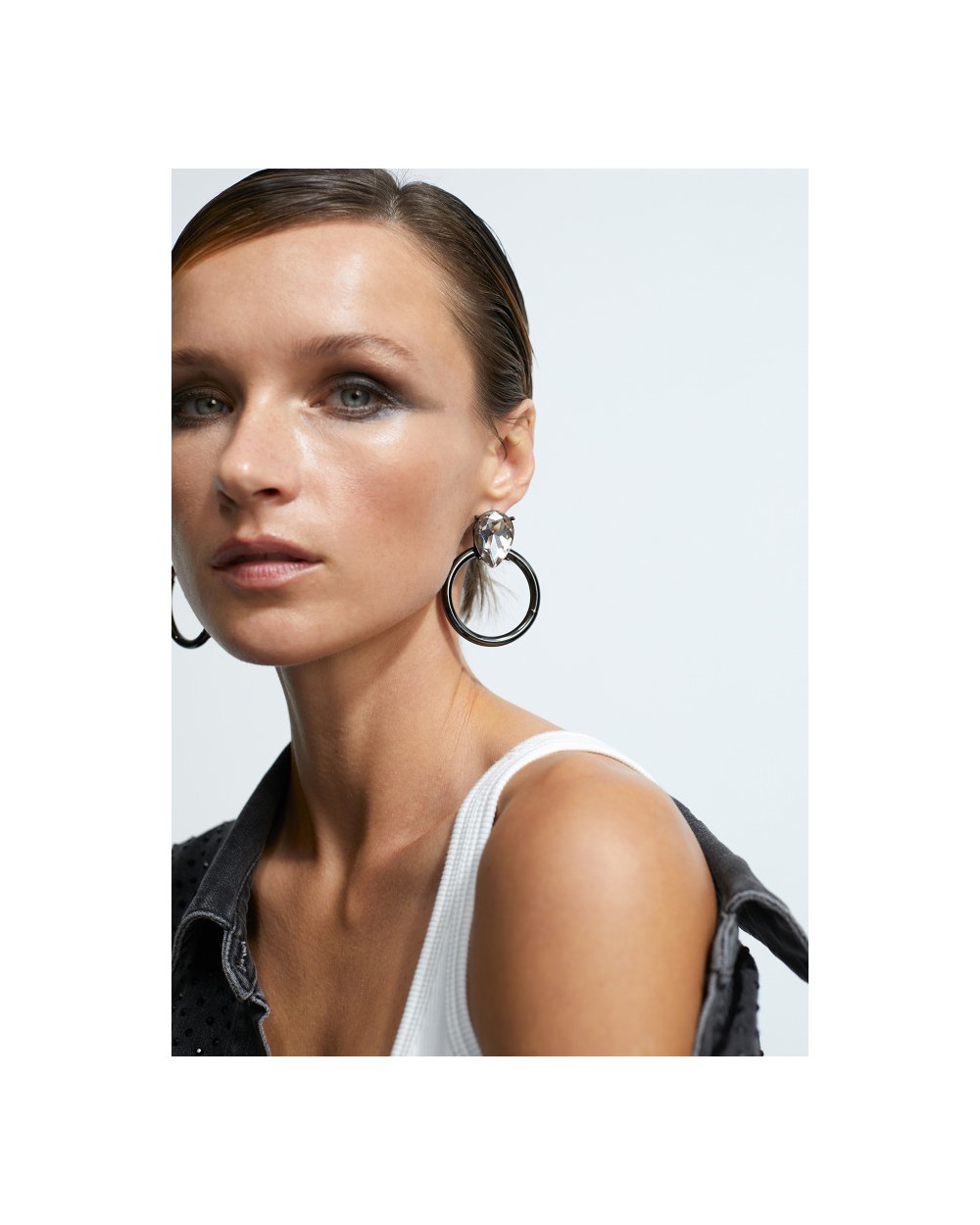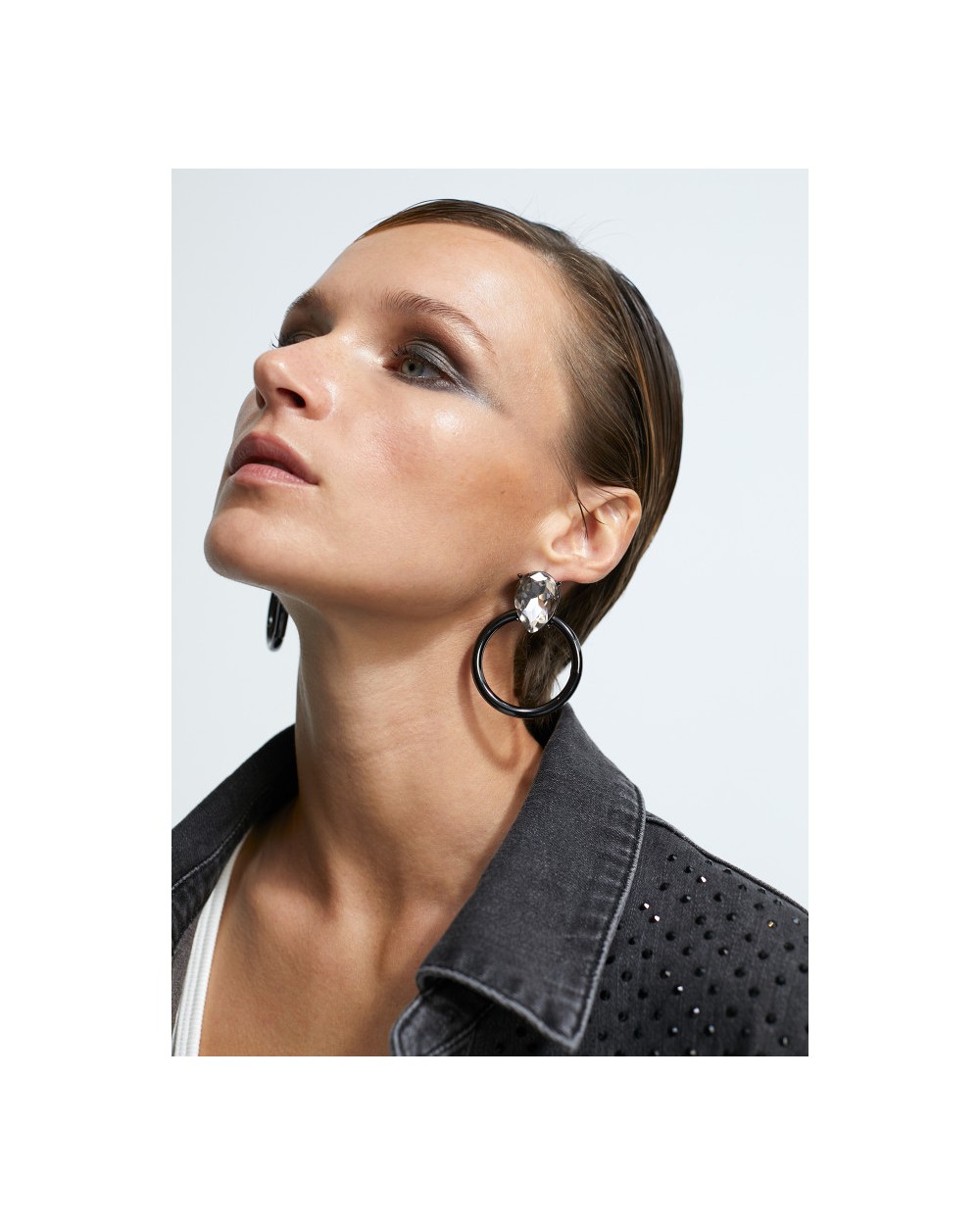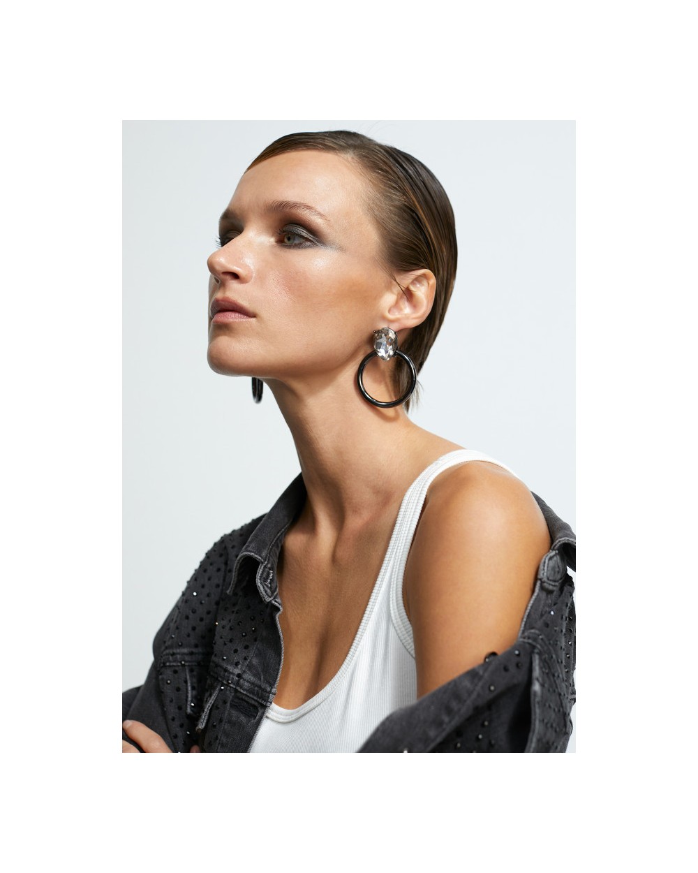 Pendientes con maxi joya piedra brillante con aro.