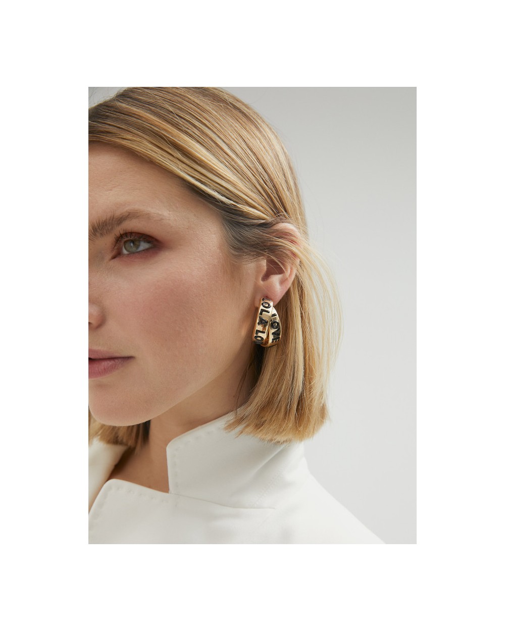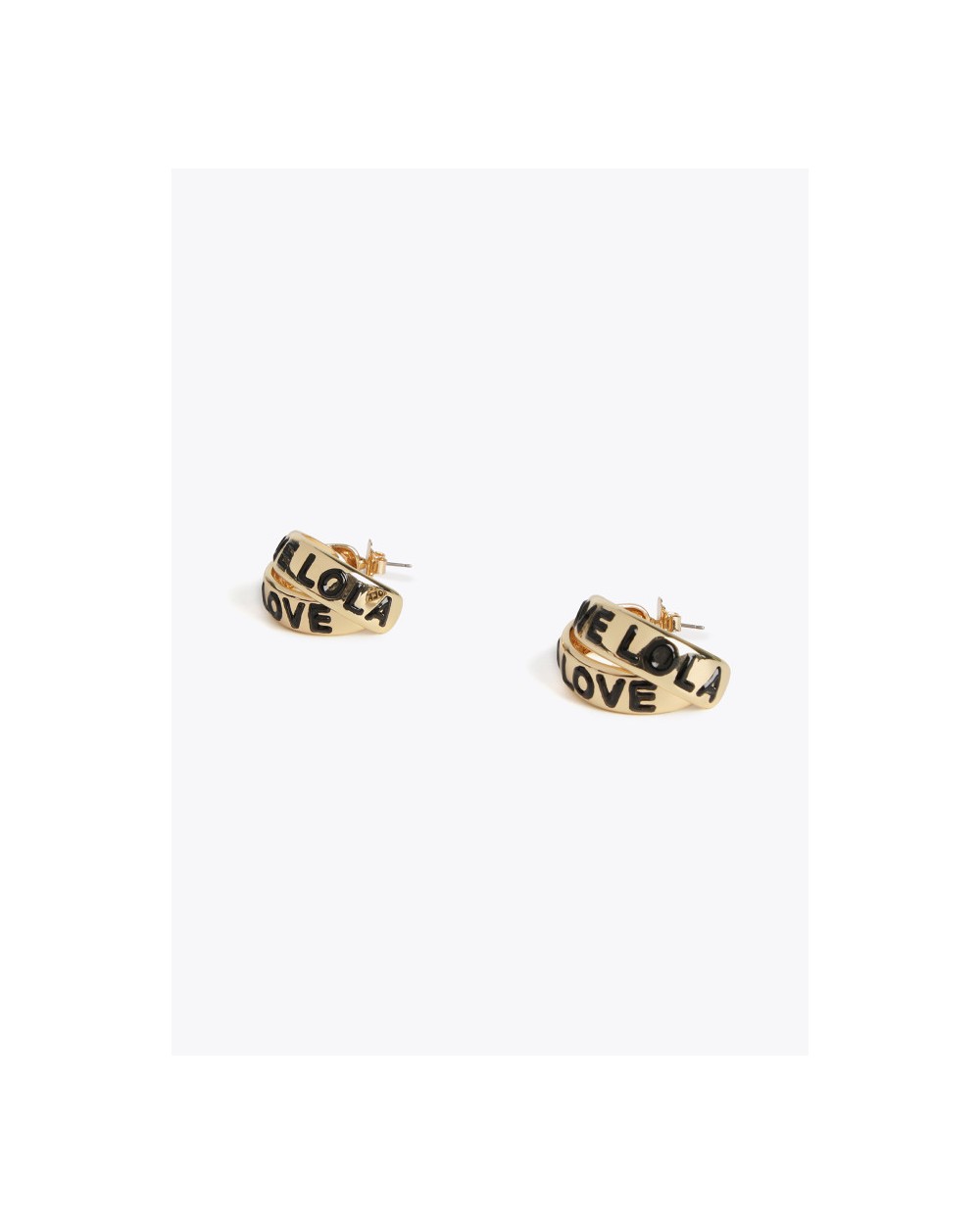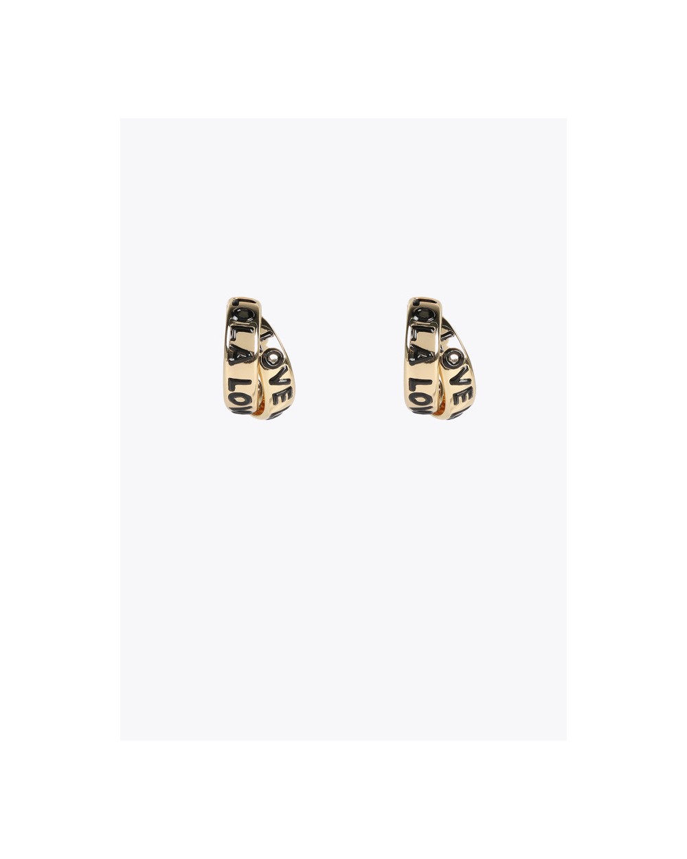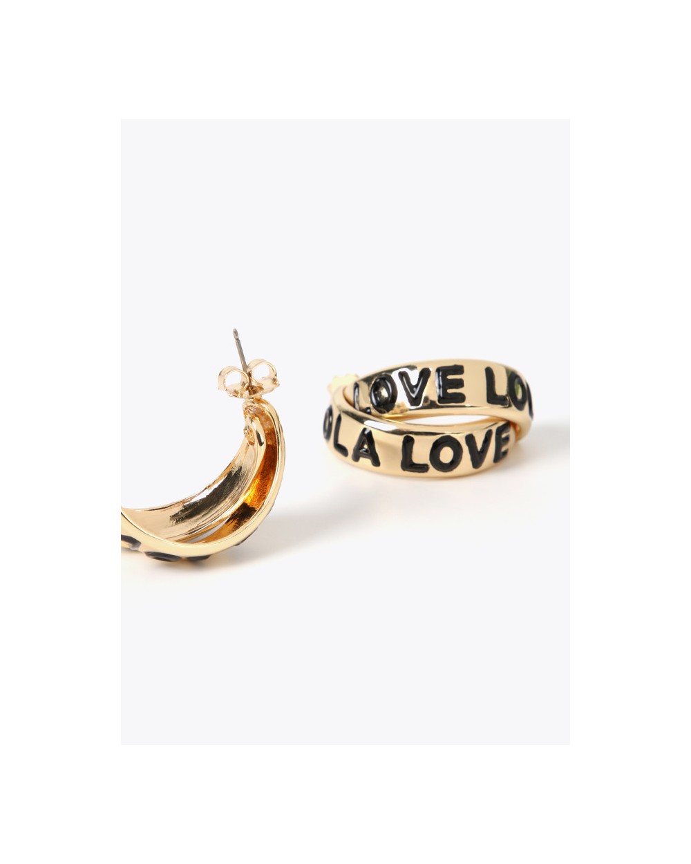 Pendientes doble aro abierto en color dorado y mensaje grabado en color negro.
