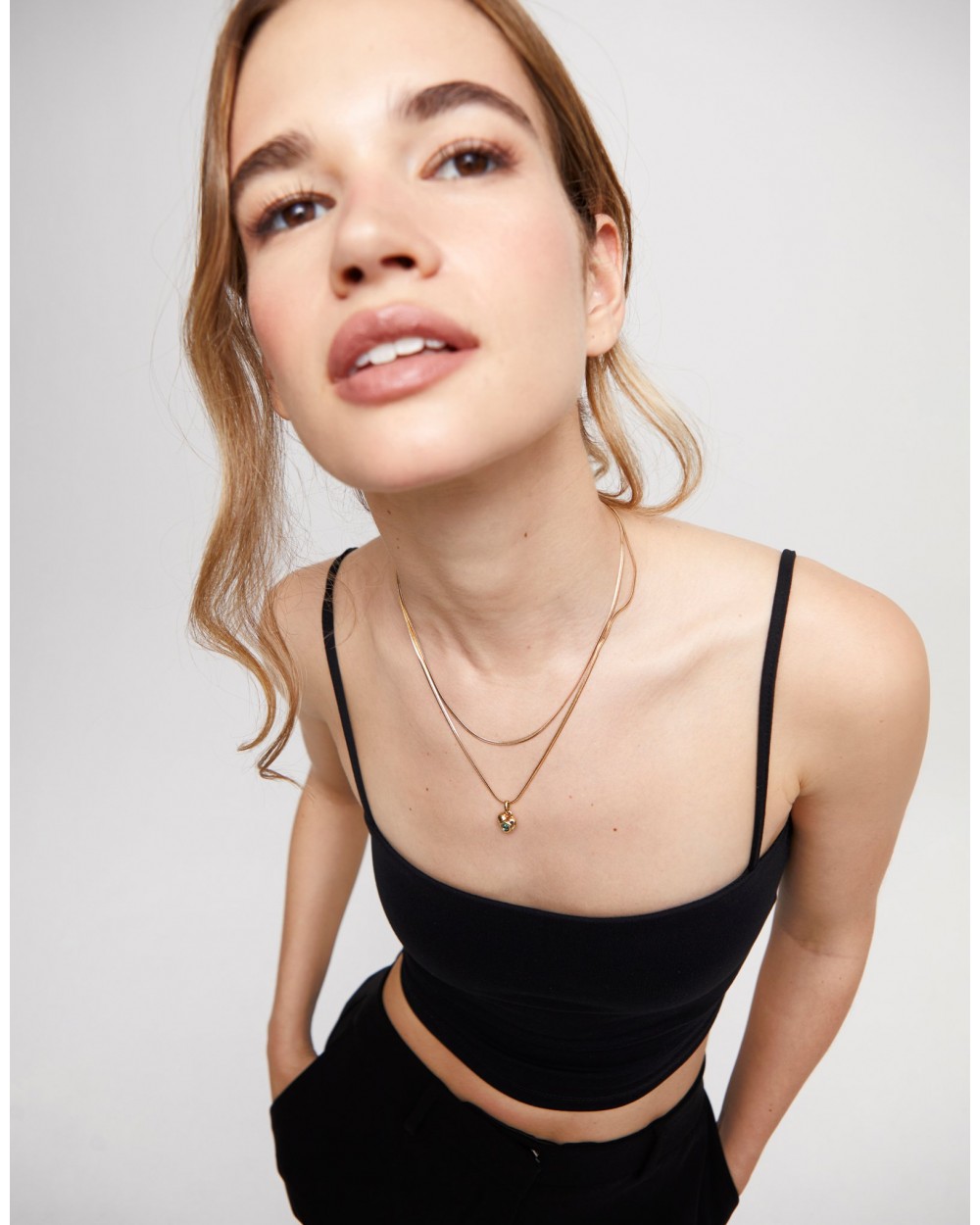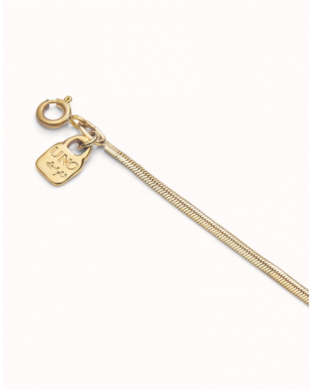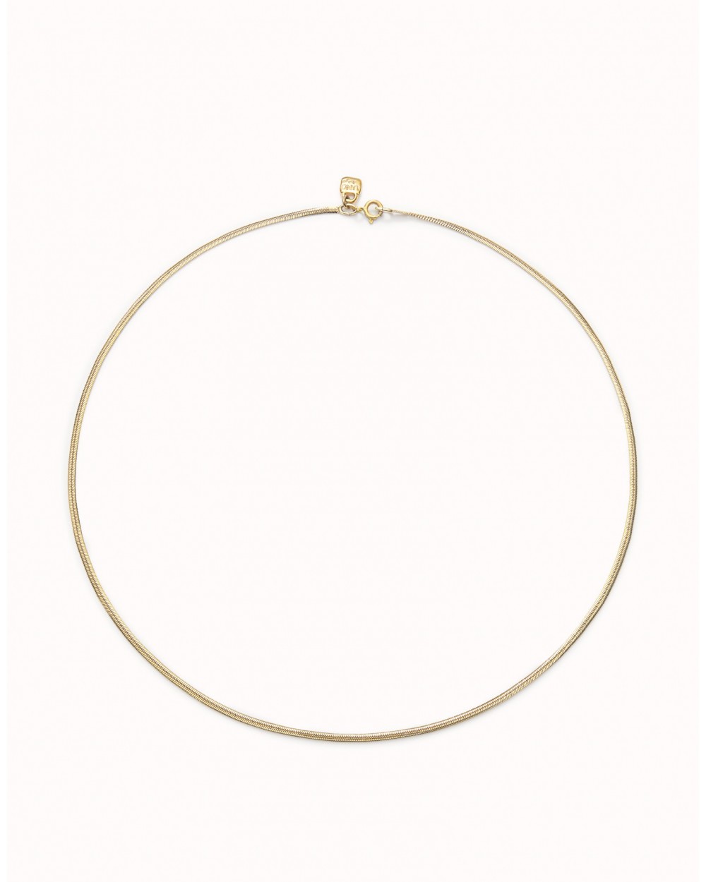Collar bañado en oro de 18k formada por eslabaones pequeños y un cierre de mosquetón extensible. Se puede combinar con cualquiera de nuestros charms de la colección de Personalización. Es una joya hecha en España con un proceso 100% artesanal.
