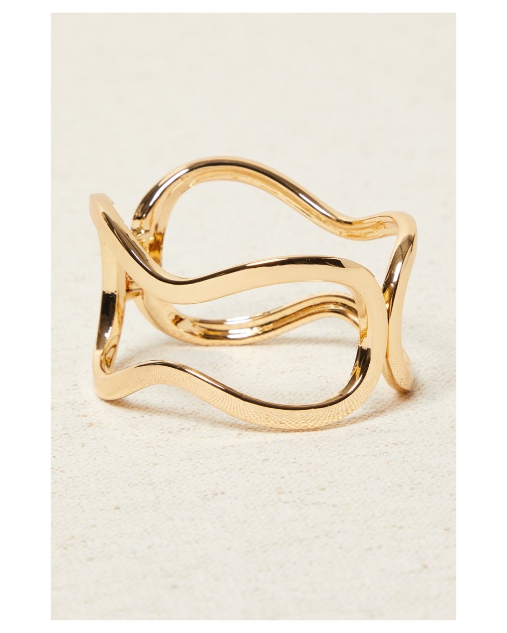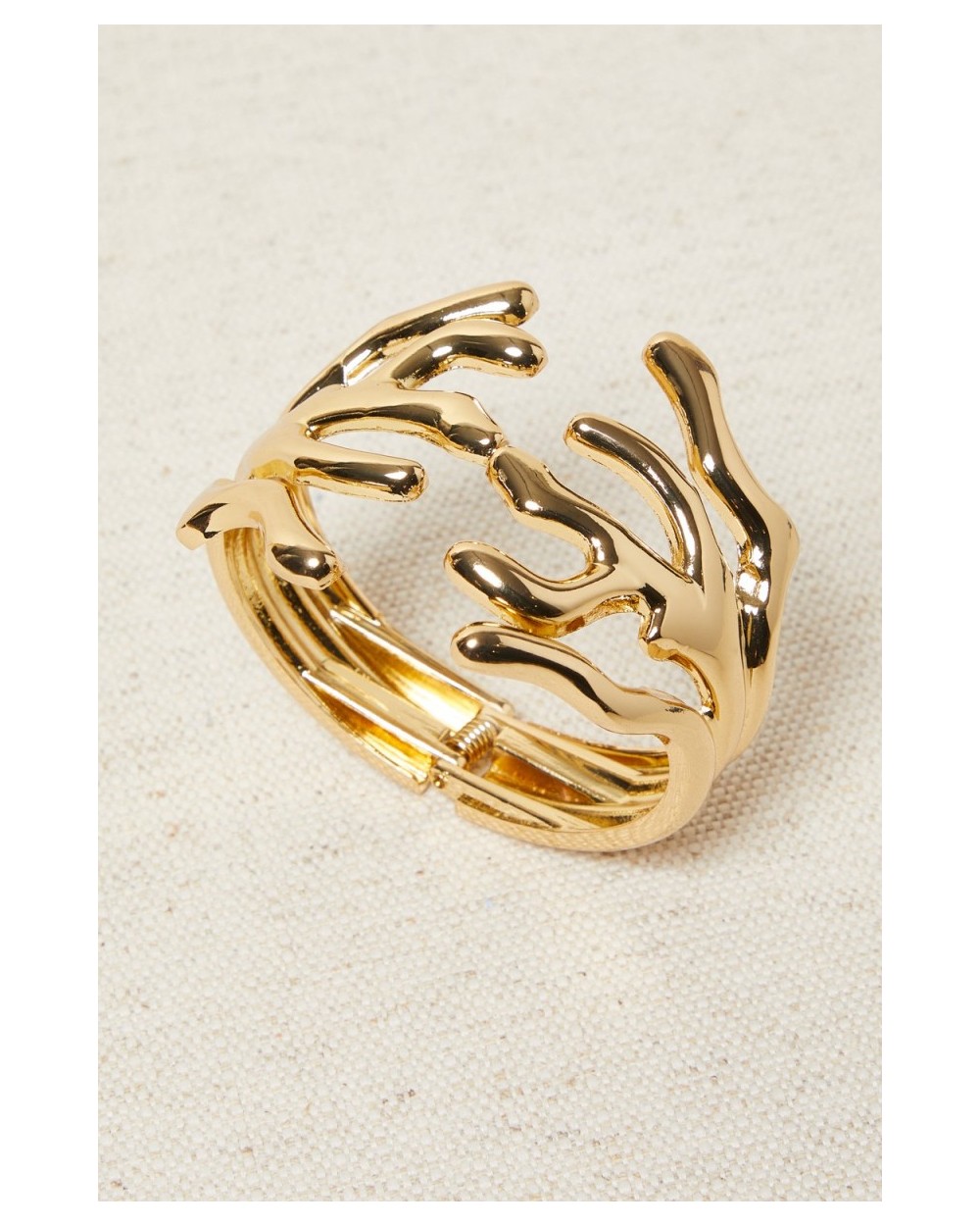 Brazalete en tono dorado, con diferentes formas. Apertura en la parte posterior.