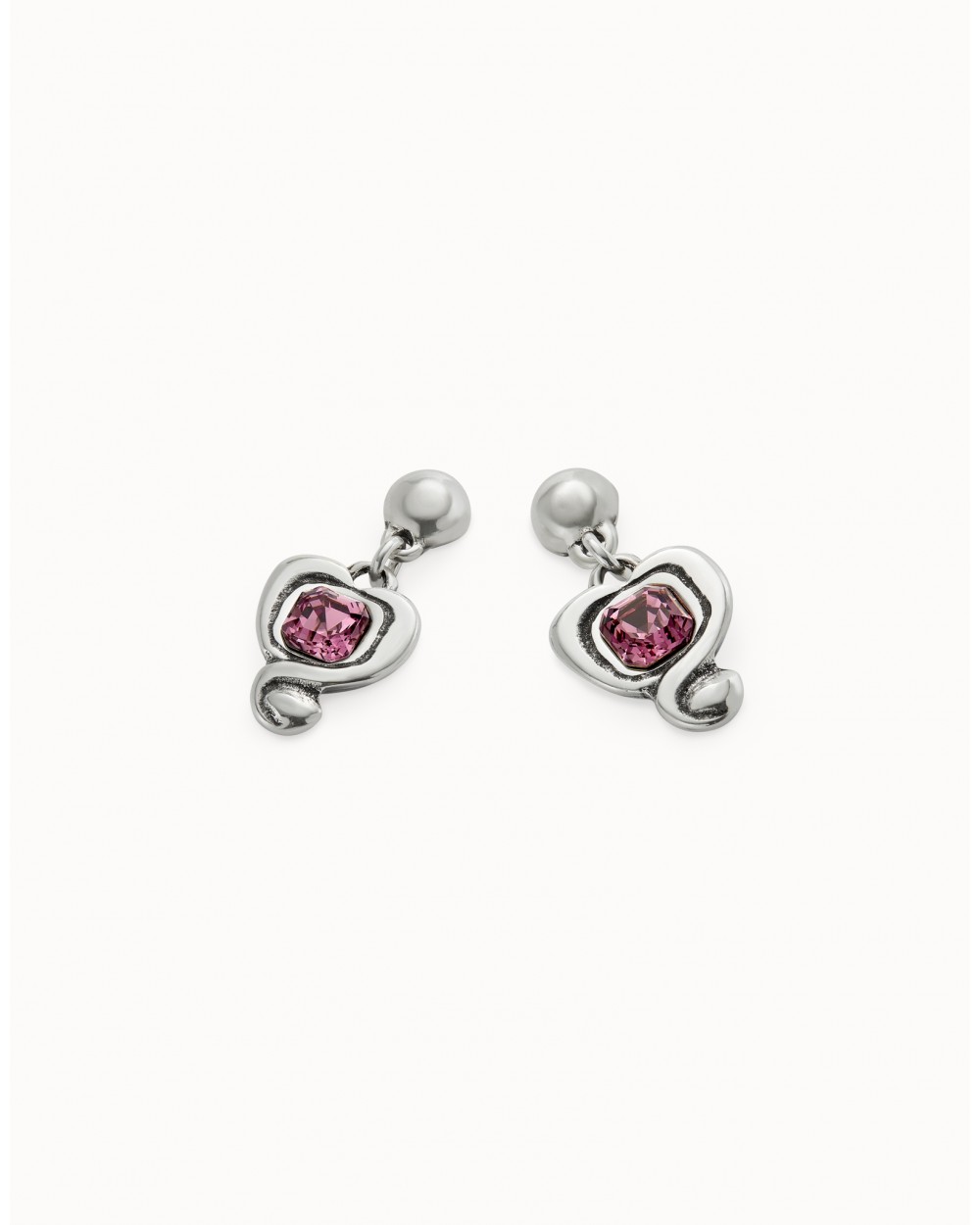 Pendientes con baño en plata de ley, con corazòn colgado y cristal en diferentes colores .