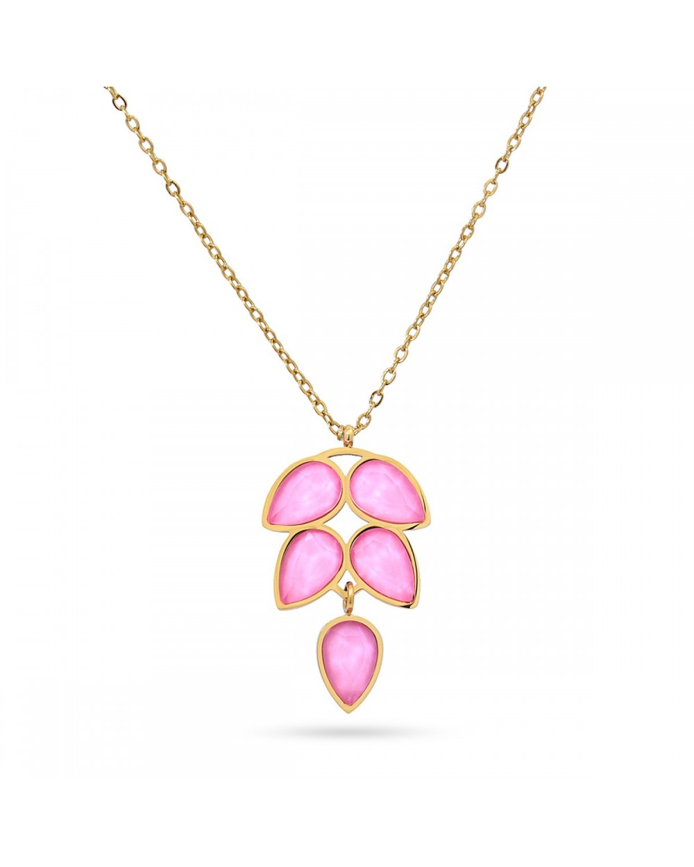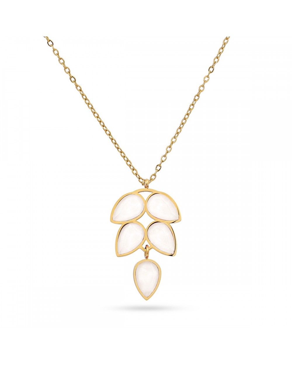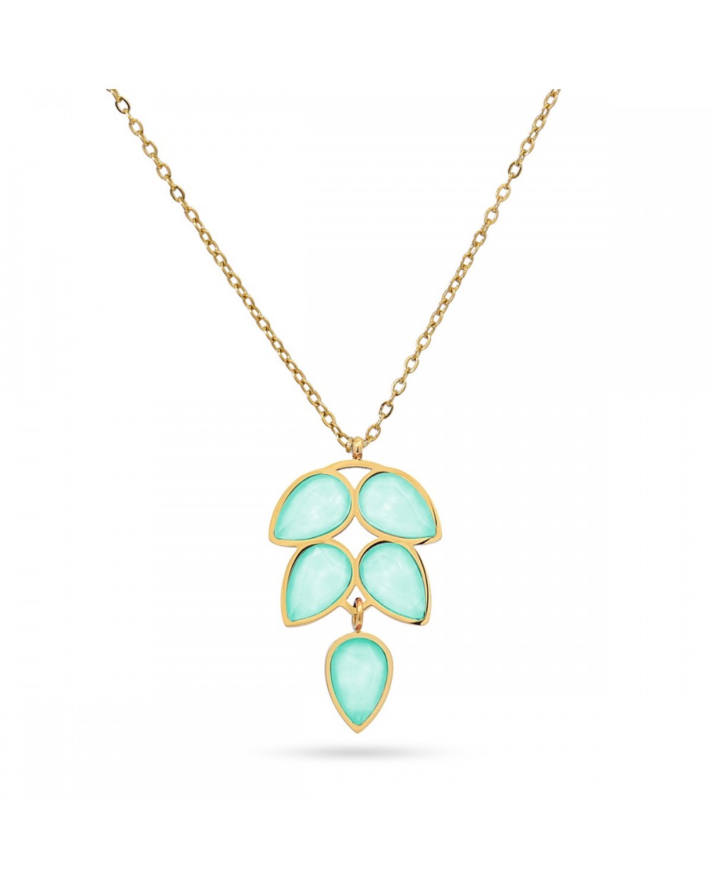 Collar en acero inoxidable, disponible en 3 combinaciones de color inspiradas en una hoja. Piedras de cristal y cadena de extensión ajustable para un ajuste perfecto. Sin alergias, ideal para lucir en cualquier ocasión.