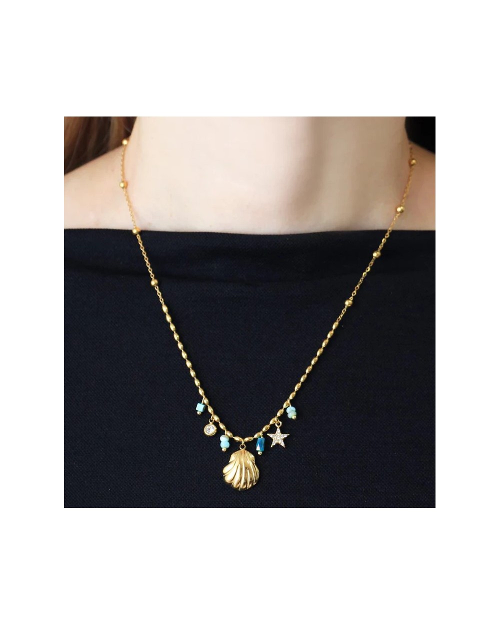 COLLAR ACERO CHARMS CONCHA Y ESTRELLA DE ANARTXY