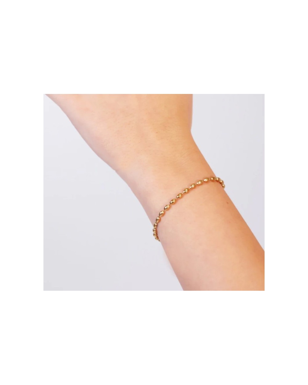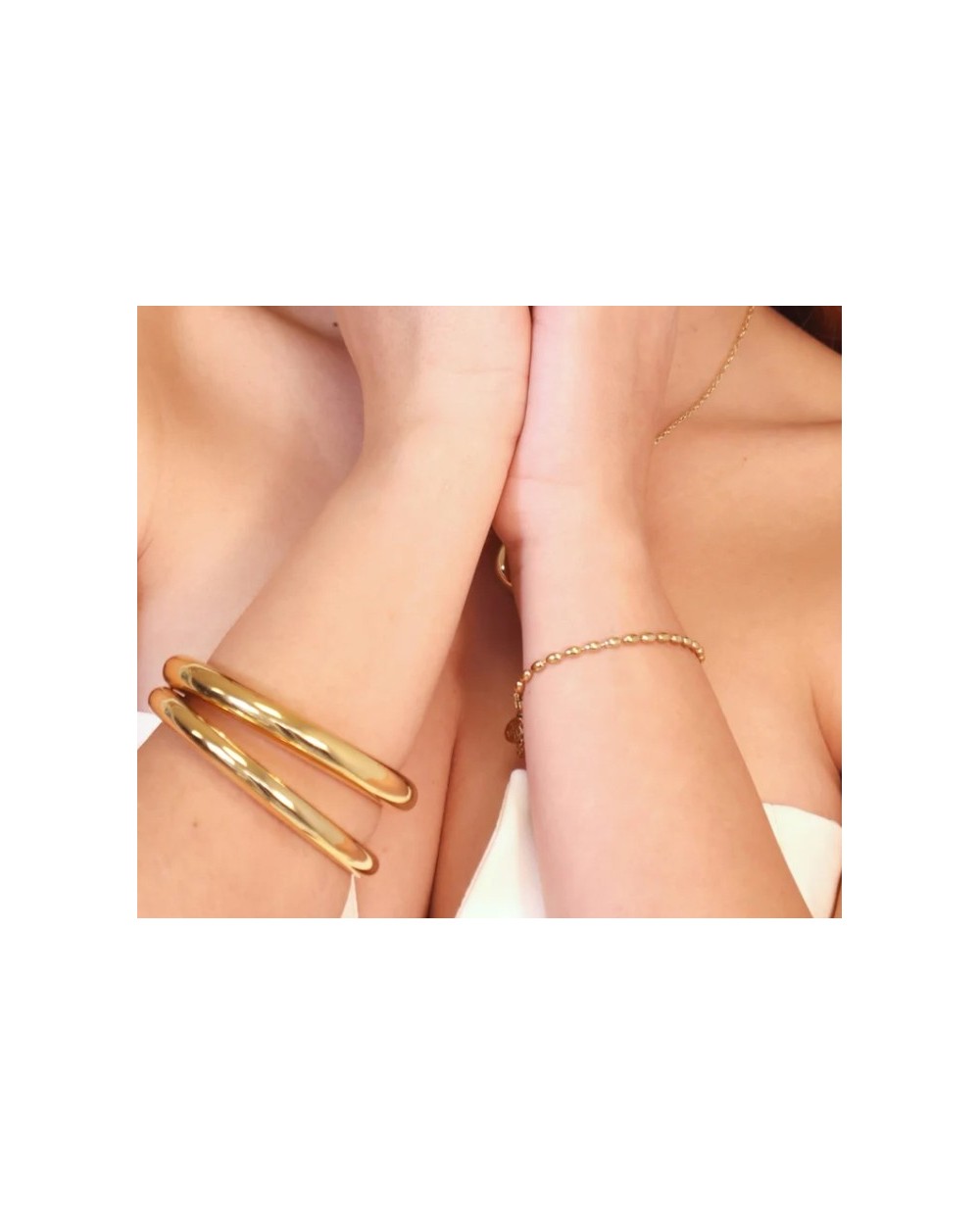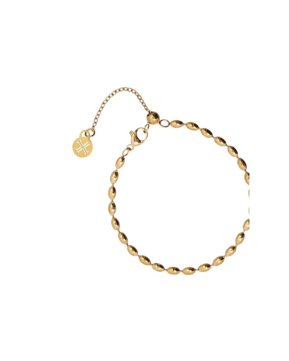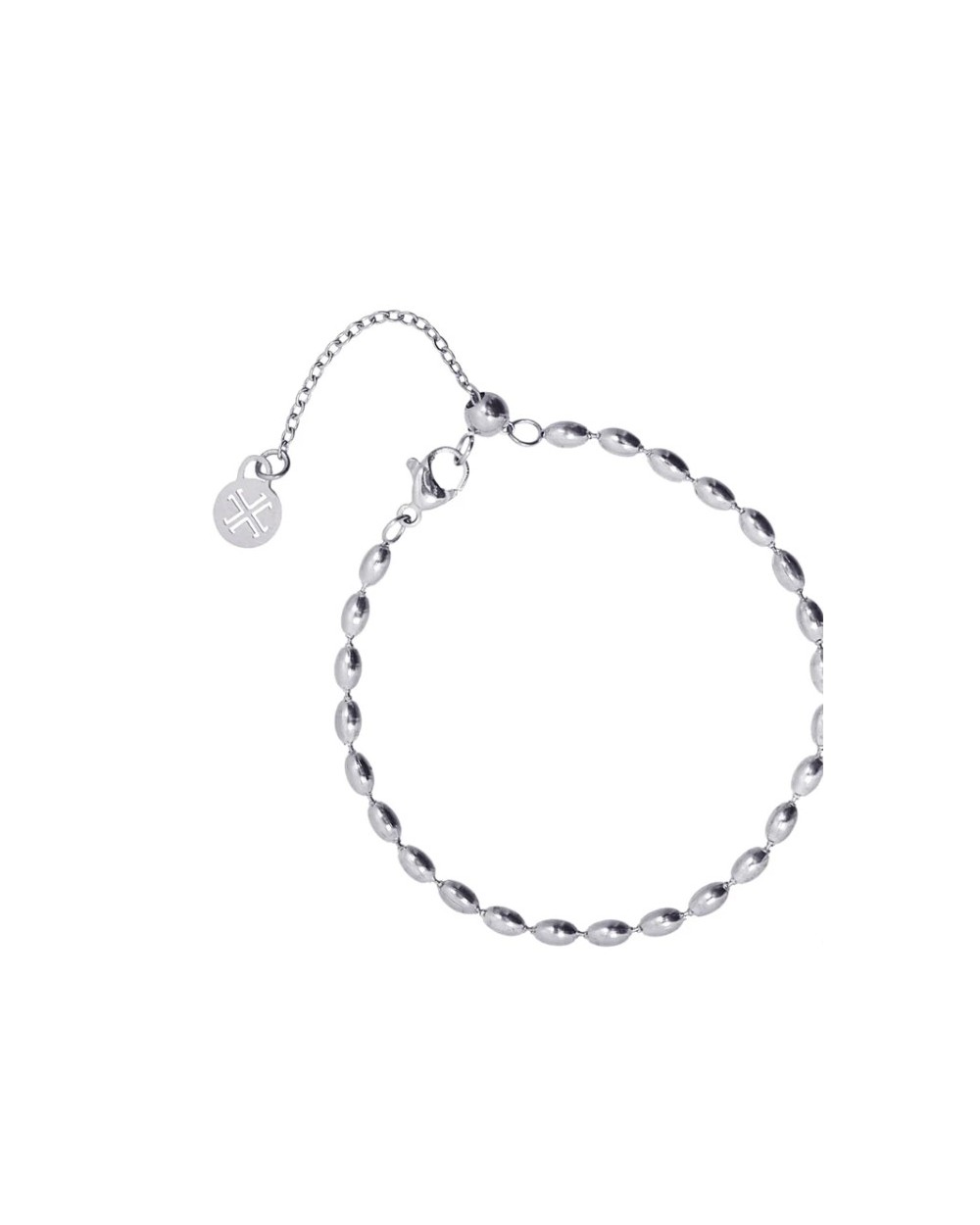 Pulsera con cuentas de acero quirúrgico y una cadena ajustable con cierre deslizante. Cómoda y favorecedora, combina perfectamente con su collar a juego. No provoca alergias y está disponible en oro y plata, quedando muy bien la combinaciòn de los dos tonos.