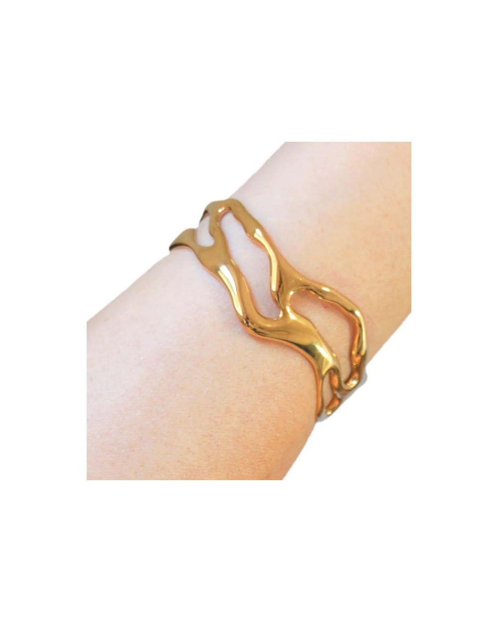 Pulsera en acero antialérgica, ajustable a la muñeca. Disponible en colores oro y plata.