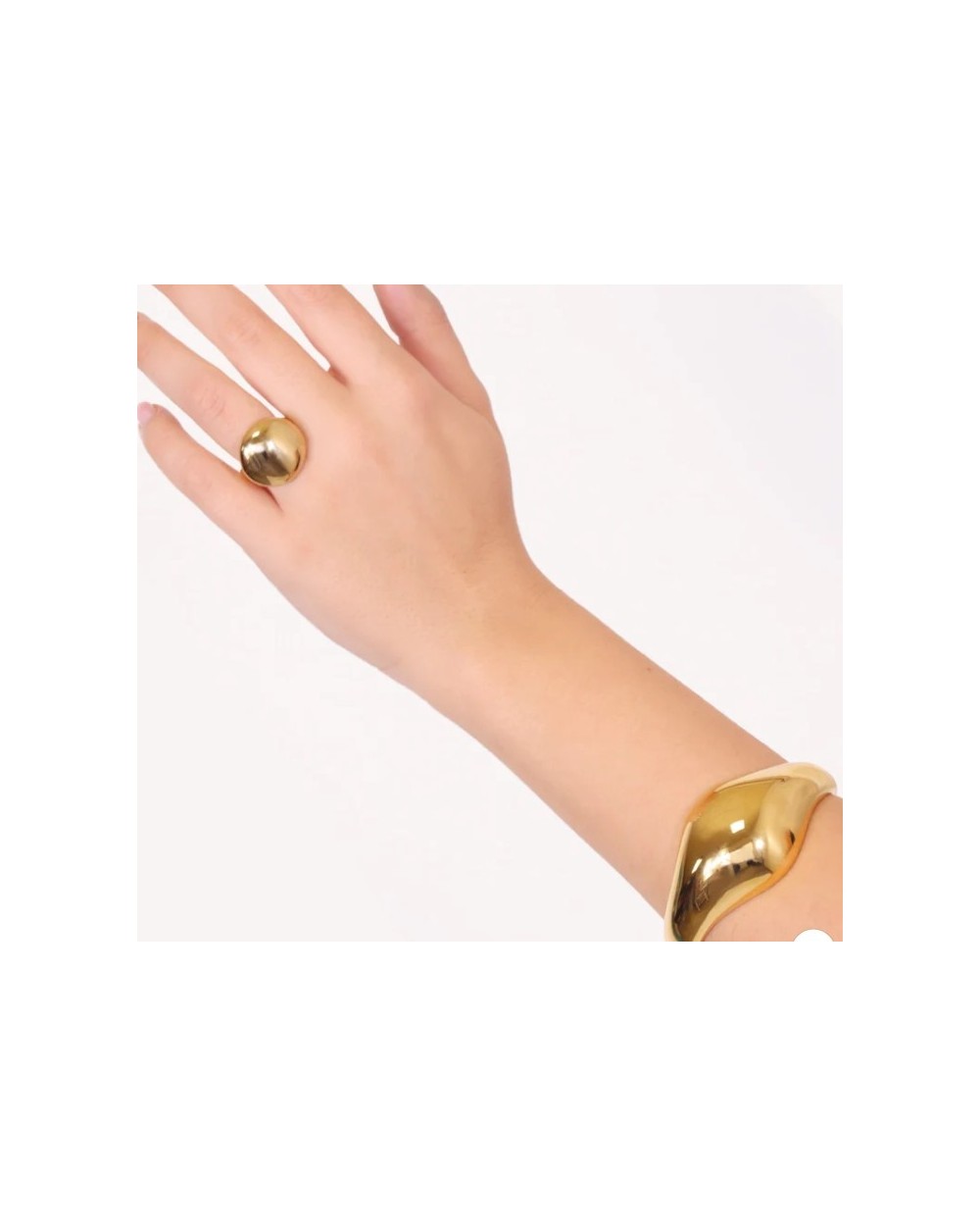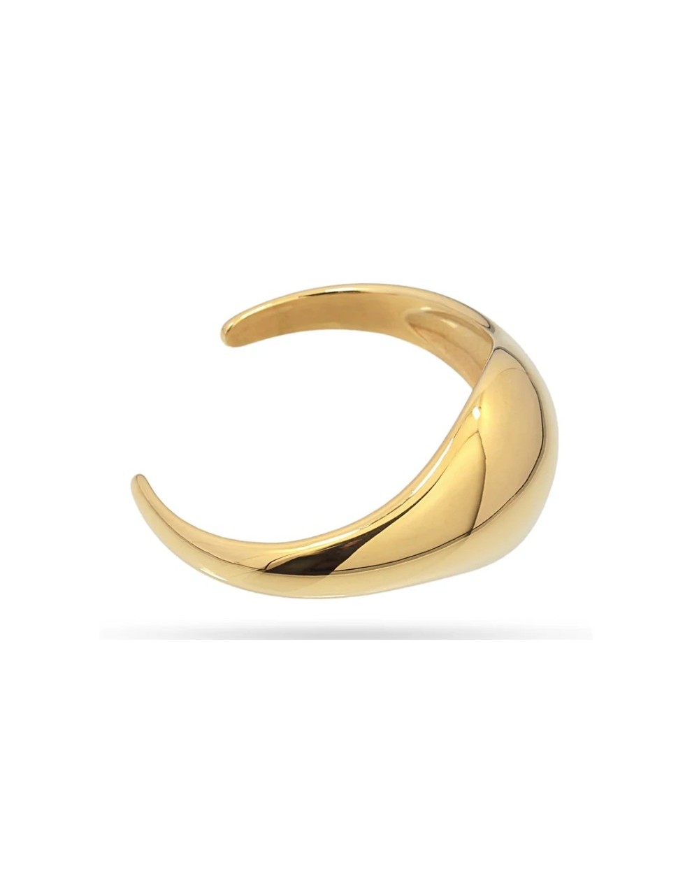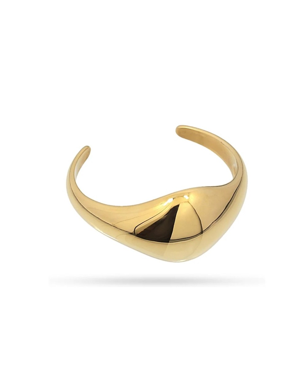 La pulsera Duna es el accesorio perfecto para tus noches de fiesta. Hecha de acero quirúrgico en color oro o plata, su imponente diseño de brazalete rígido es vanguardista e inspirado en las formas orgánicas de la naturaleza. Añade un toque de elegancia y originalidad a tus atuendos con esta pulsera exclusiva.