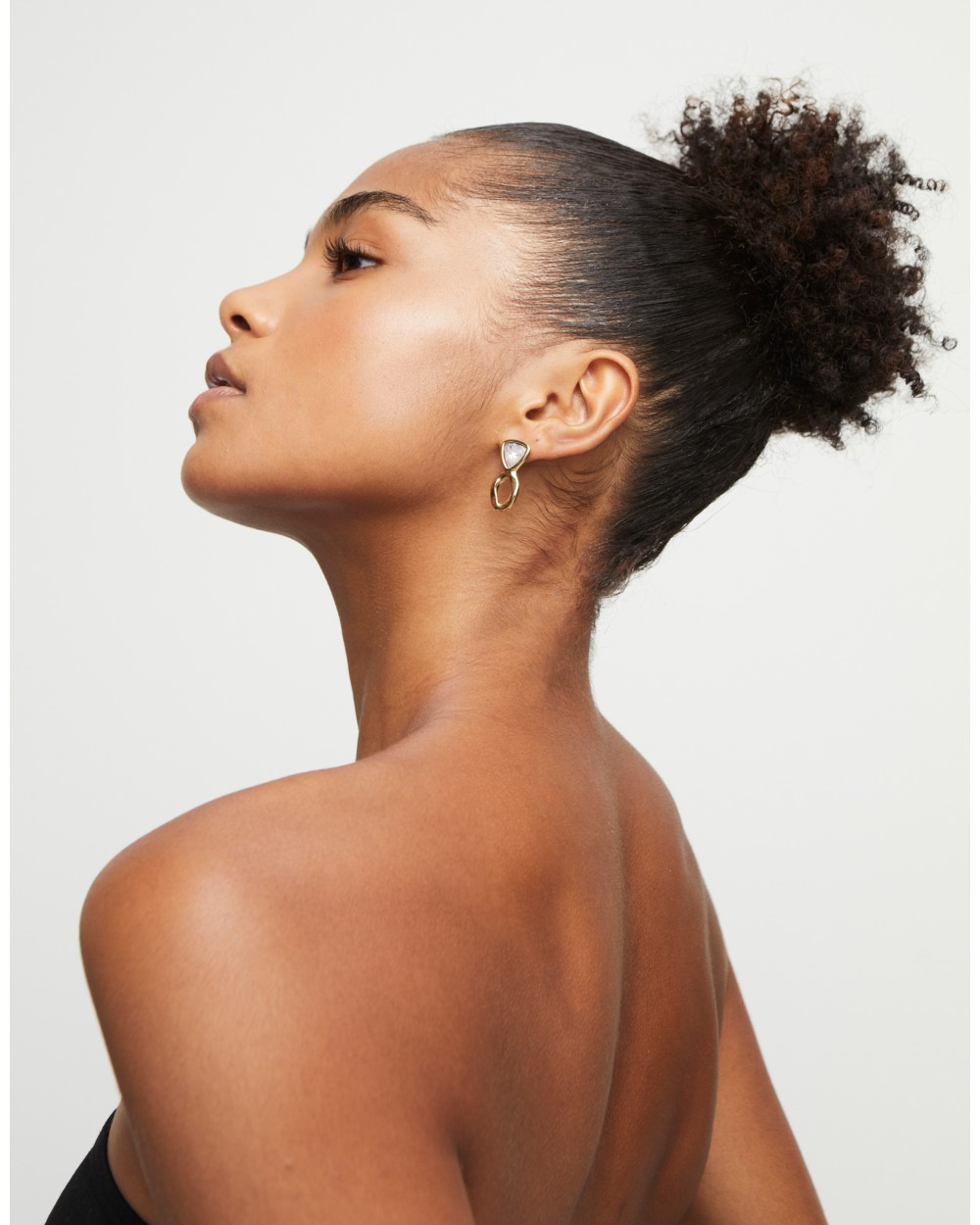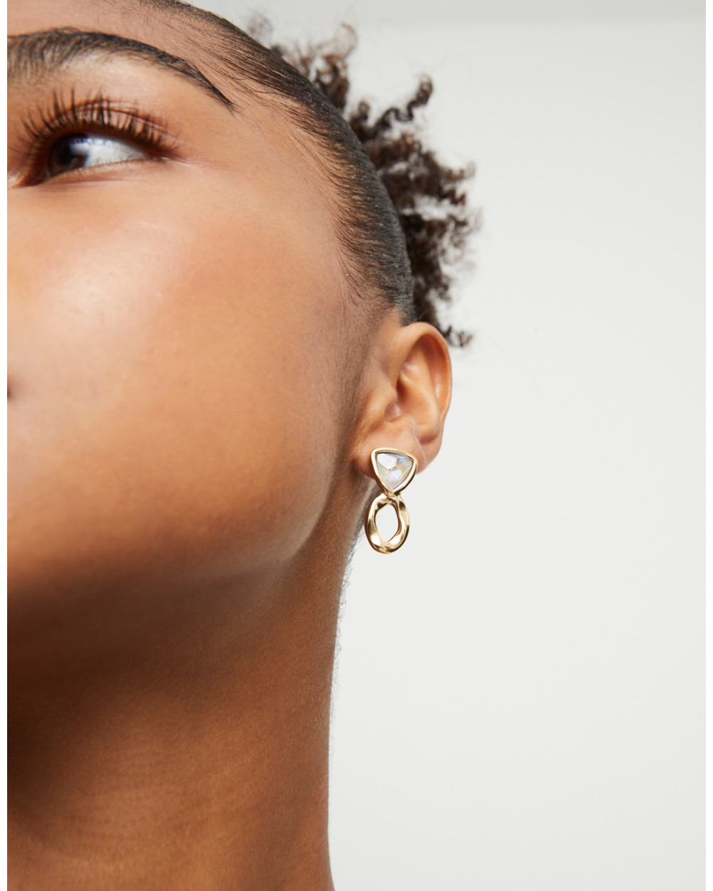 Pendientes bañados en oro 18k con cristales triangulares multicolor.