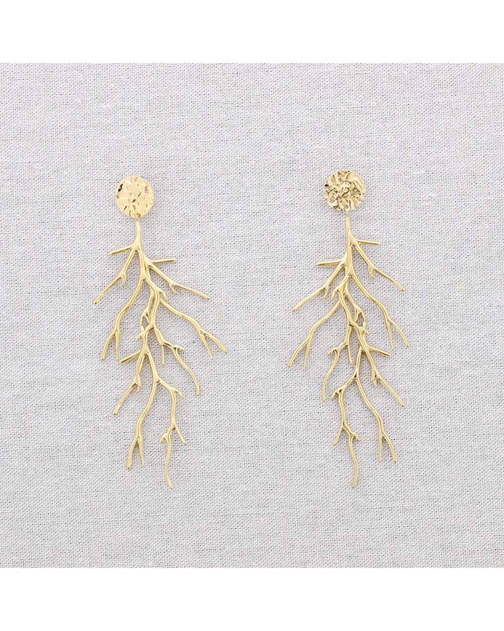 PENDIENTES LARGOS CORAL ACERO DORADO