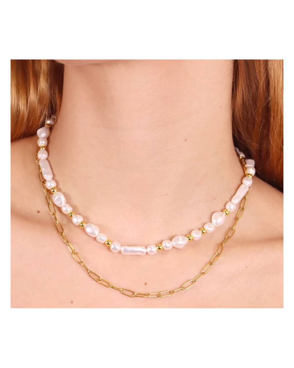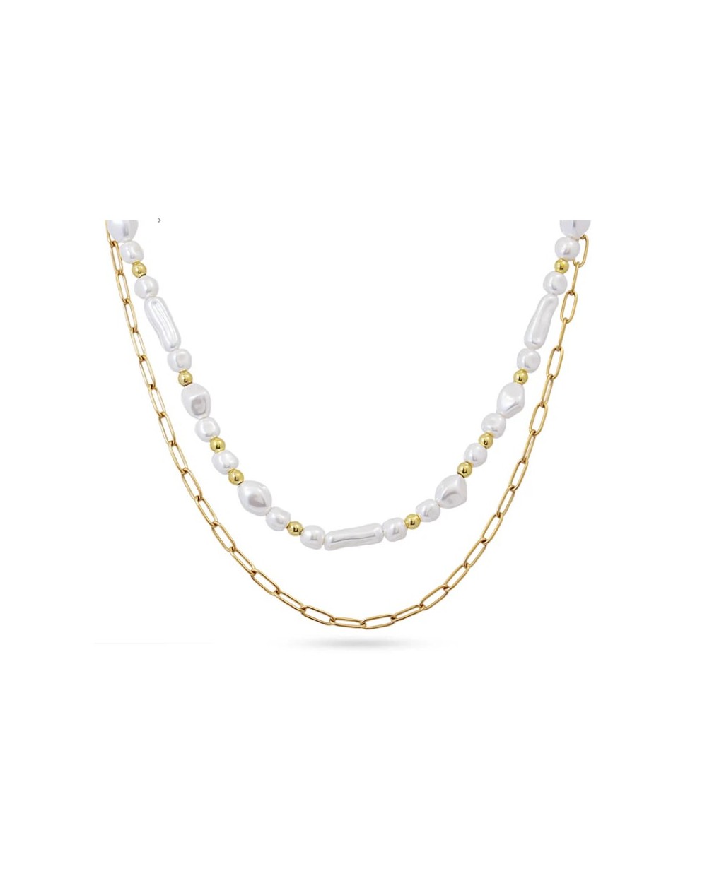 COLLAR DOBLE CON PERLAS DE ACERO DE ANARXY