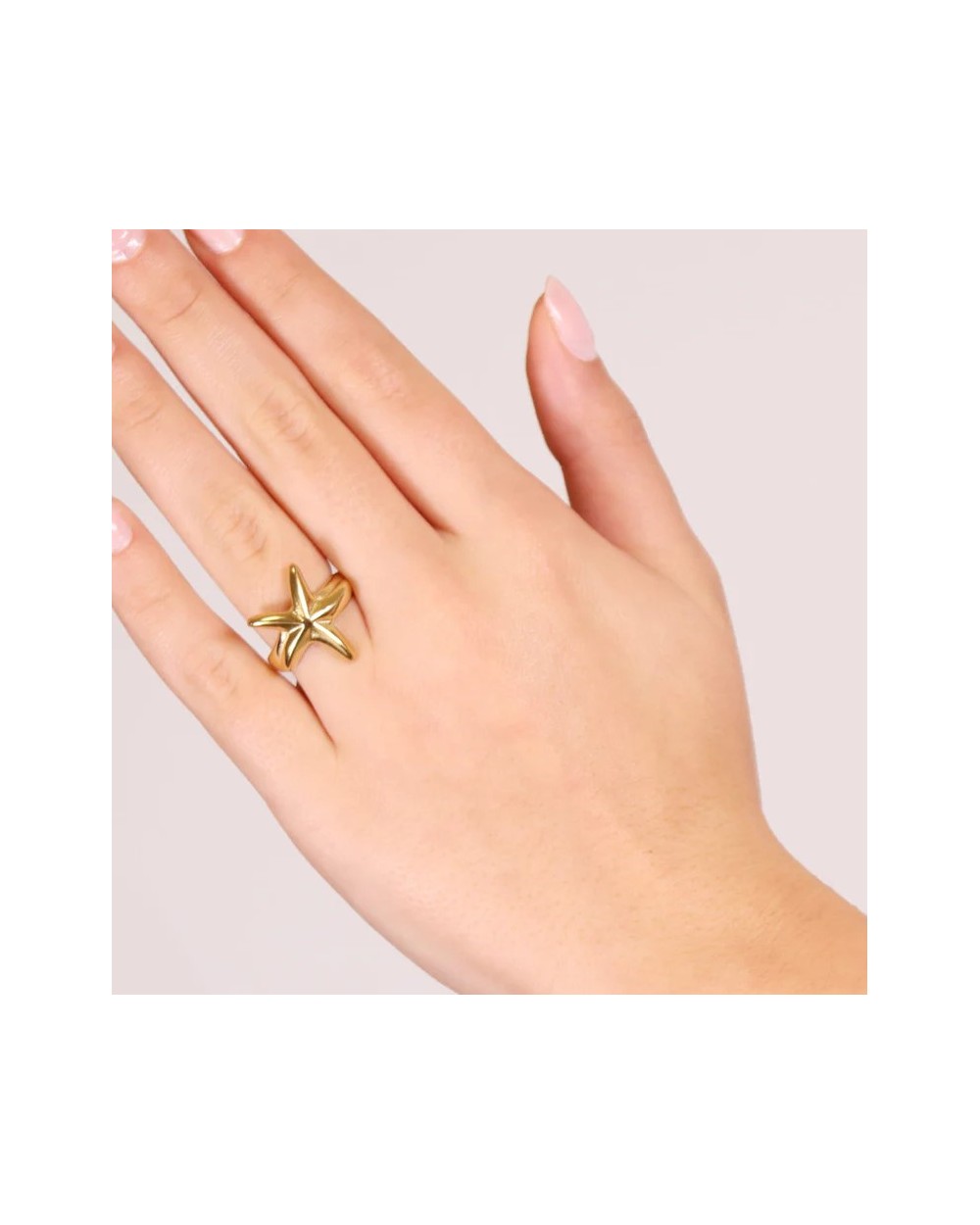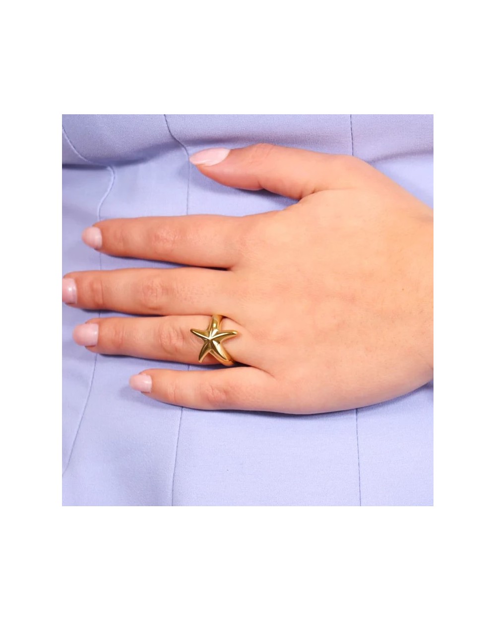 El Anillo Starling de acero quirúrgico pulido con un diseño de estrella de mar, es hipoalergénico por lo que no tendrás que preocuparte por reacciones alérgicas.