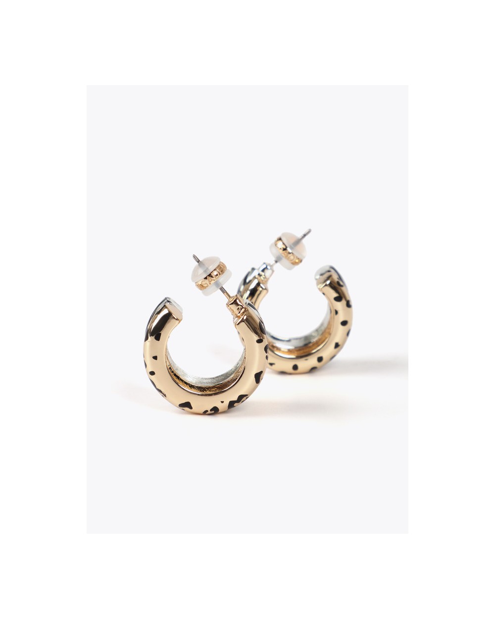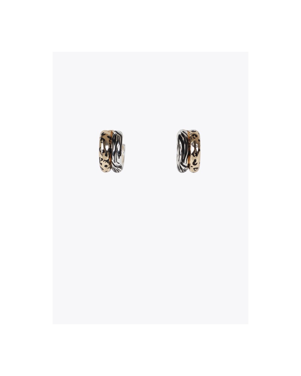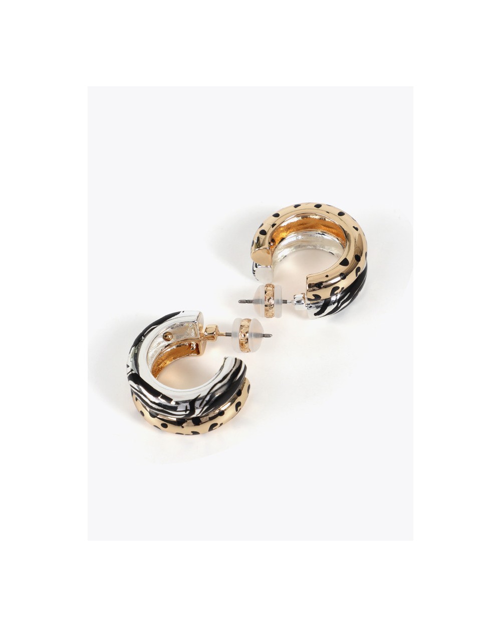 lola cPendientes doble aro con un estampado animal bicolor. Diseño metálico con cierre de tuerca para una sujeción segura.