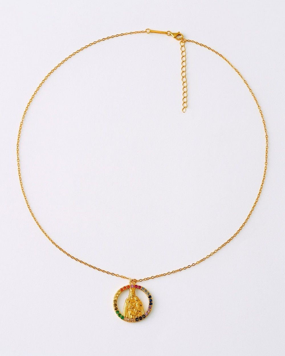Collar corto plata bañado en oro con circonitas de colores en plata bañada en oro.