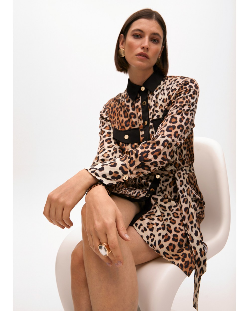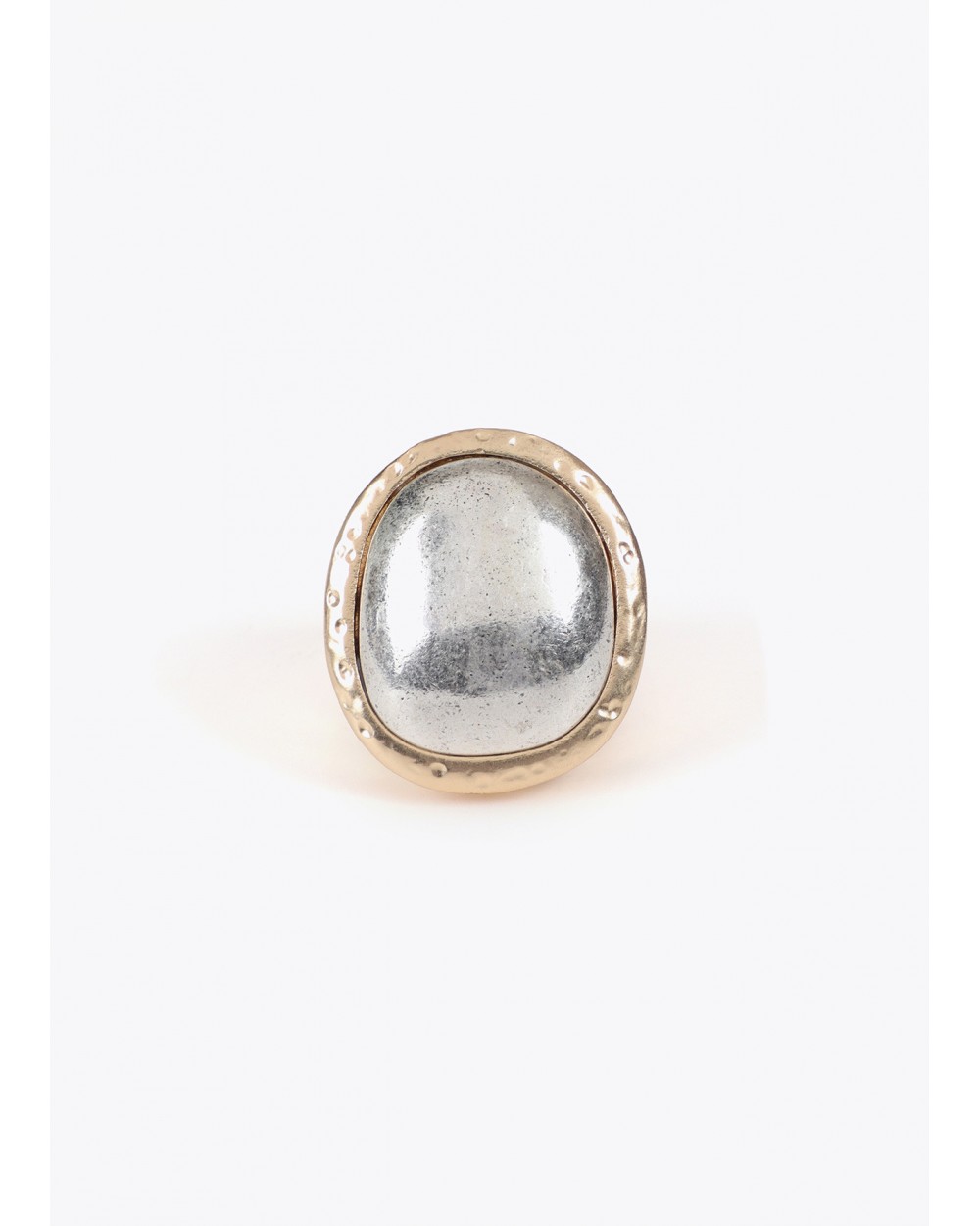Anillo grande bicolor con una pieza central en acabado metalizado, combina el dorado con el plateado.