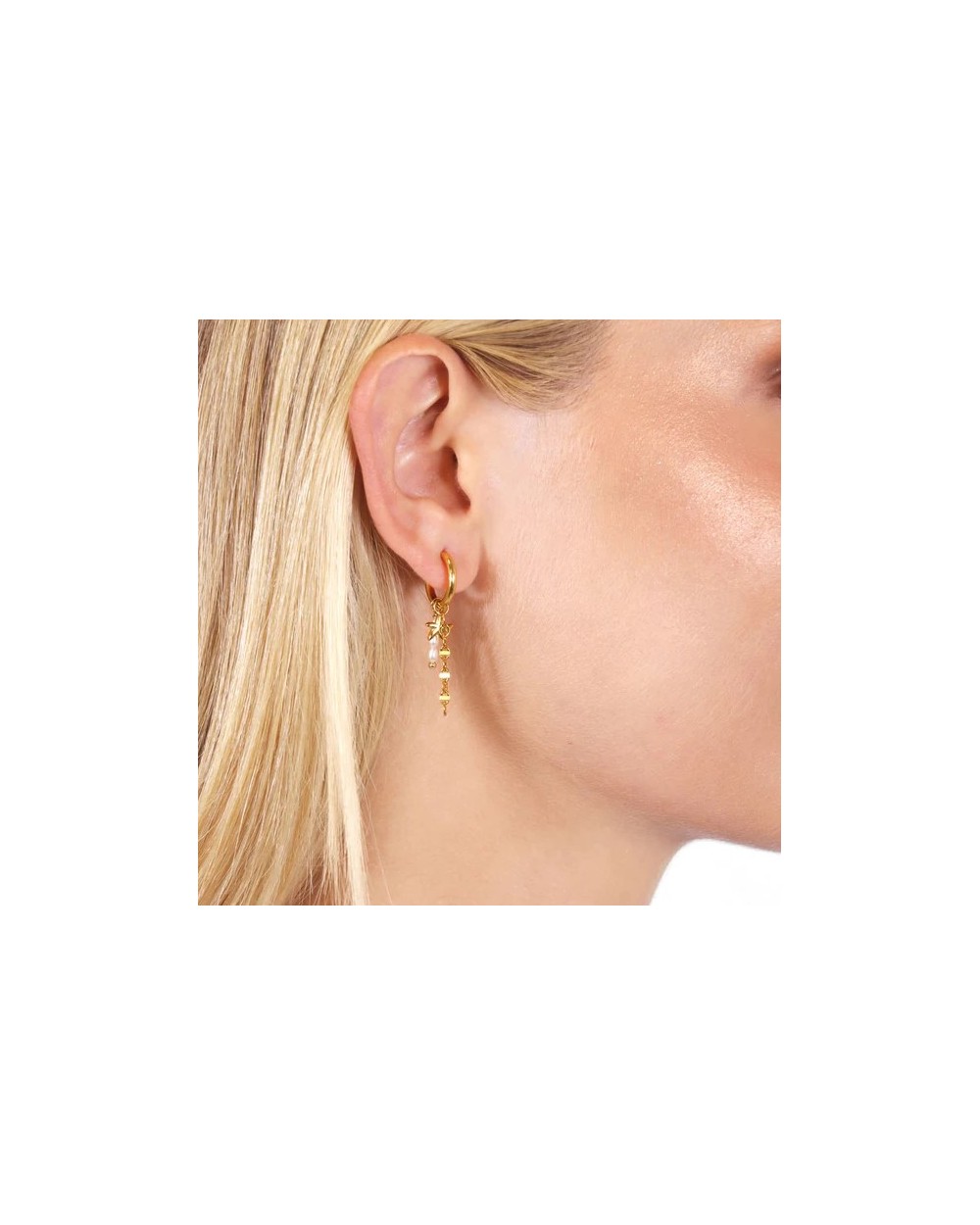 Pendientes Spirit Tangle son mini aros de 14 mm en acero quirúrgico, adornados con charms colgantes de perlas . Diseño ligero y cómodo los convierte en el complemento ideal para el uso diario, mientras que el cierre oculto garantiza seguridad.