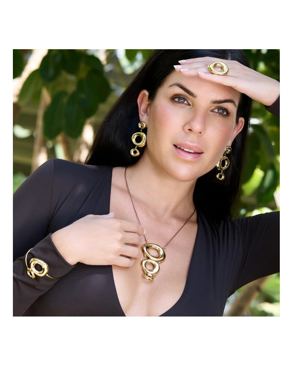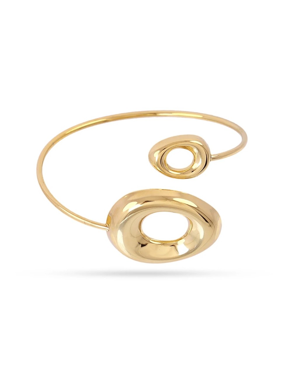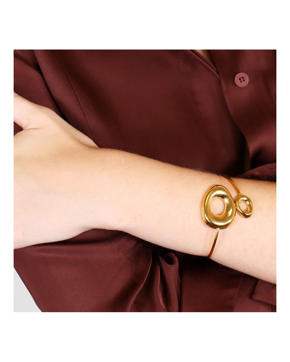 Pulsera Melt Slava, una pieza con estructura flexible en acero quirúrgico dorado, garantiza comodidad y facilidad para ponértela y quitártela, mientras que su acabado hipoalergénico y resistente al agua. Ligera, llamativa y con el sello de calidad Anartxy.