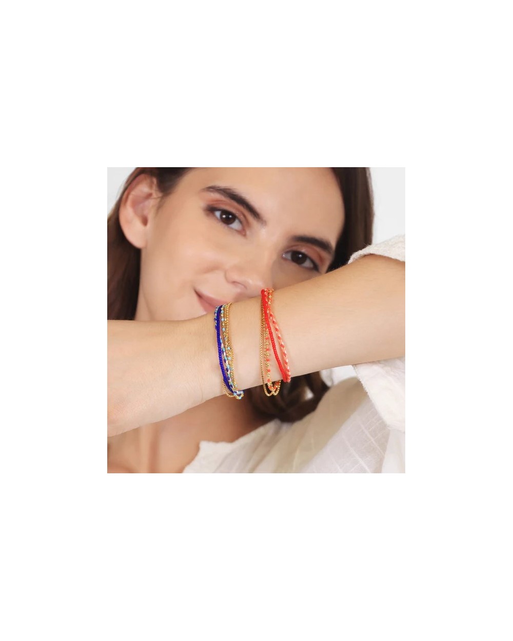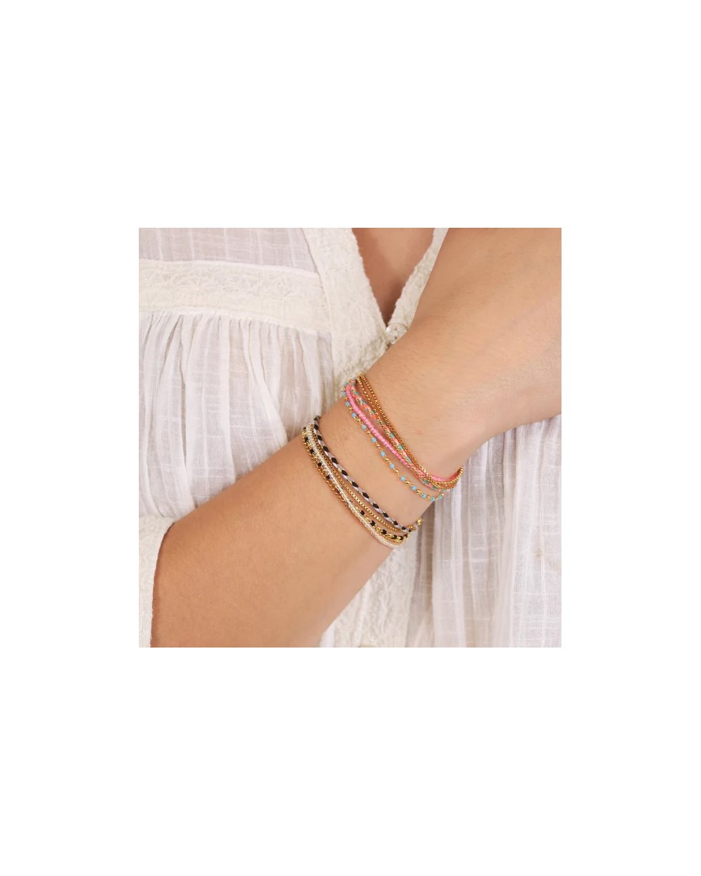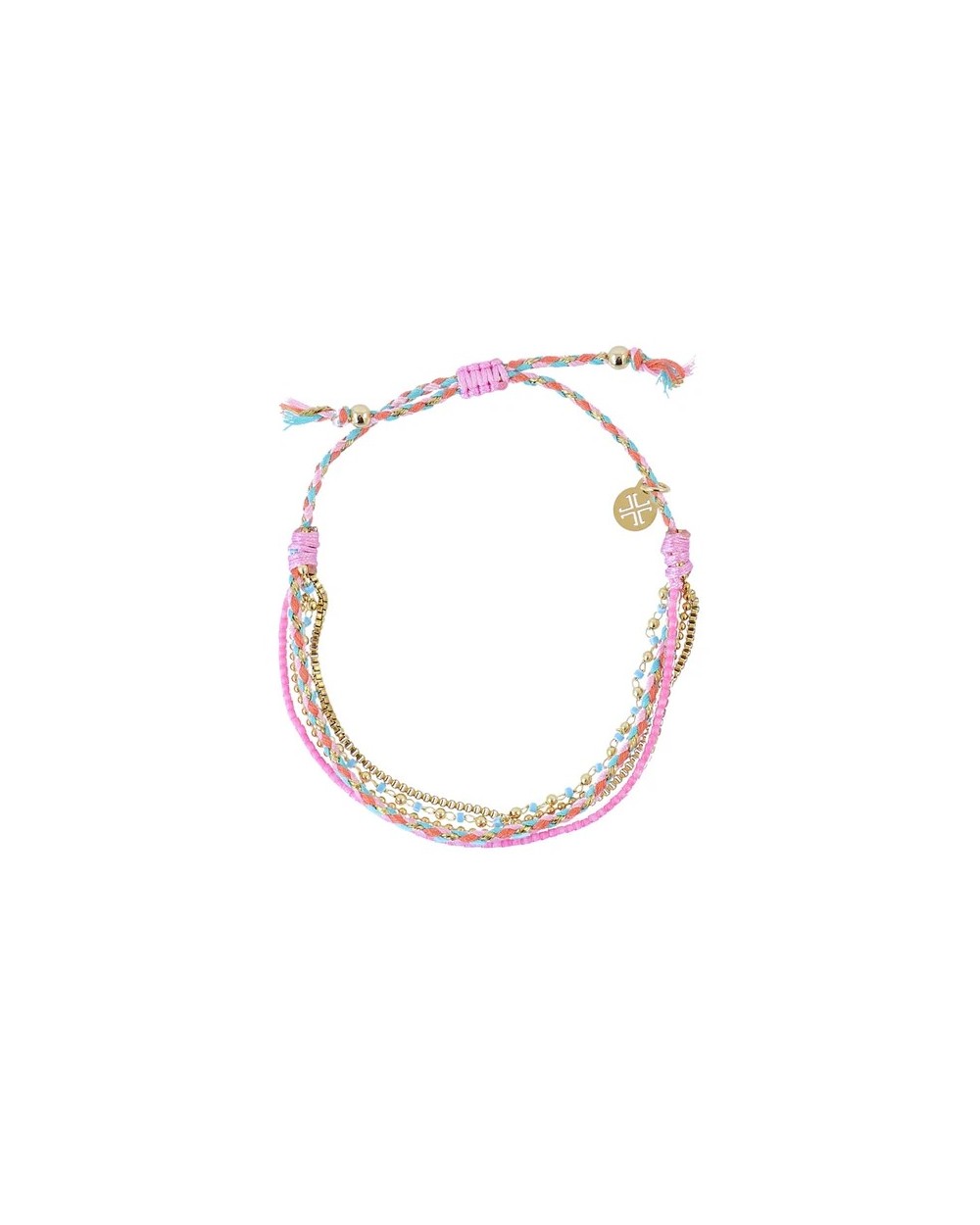 Pulsera Woven Nomad con un diseño alegre que combina acero quirúrgico y textil en colores. Su cierre deslizante garantizan un ajuste cómodo y sin alergias y con la calidad única de Anartxy.