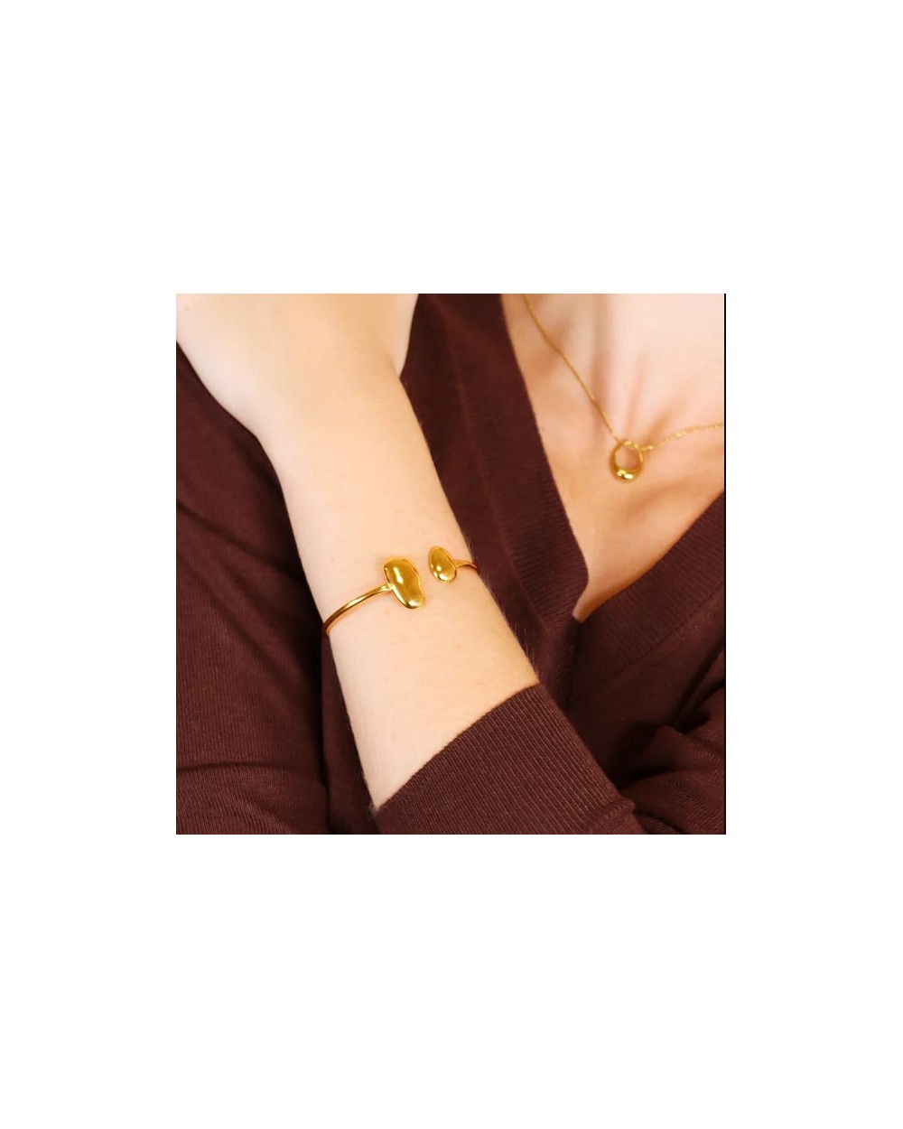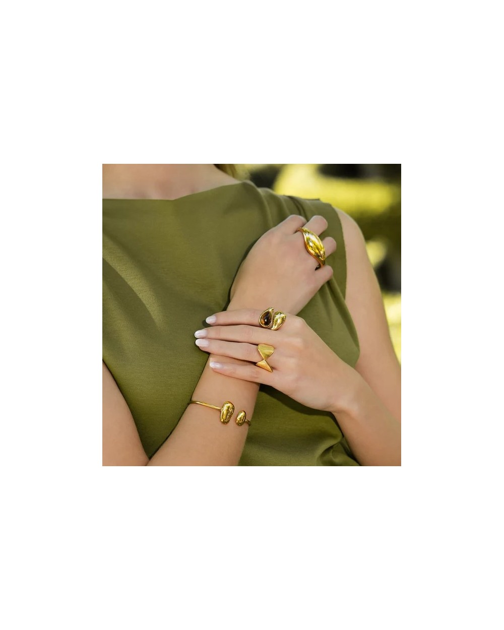 Pulsera Waves Zalya, fabricada en acero quirúrgico dorado, combina calidad y comodidad en un diseño flexible que se adapta perfectamente a tù muñeca. Hipoalergénica y resistente al agua, es una pieza versátil y combinable que se convertirá en tu accesorio imprescindible. Destaca con elegancia y confianza gracias a esta joya que une estilo y funcionalidad.