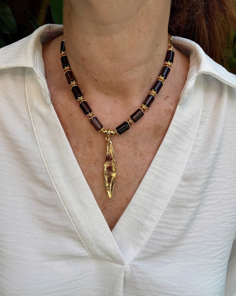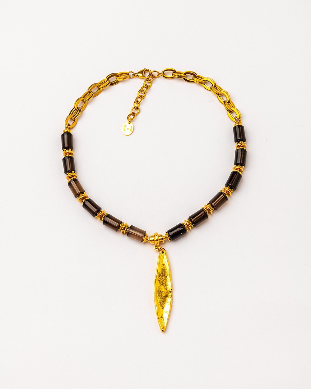 Collar corto con pieza dorada y cuarzo ahumado de Velatti