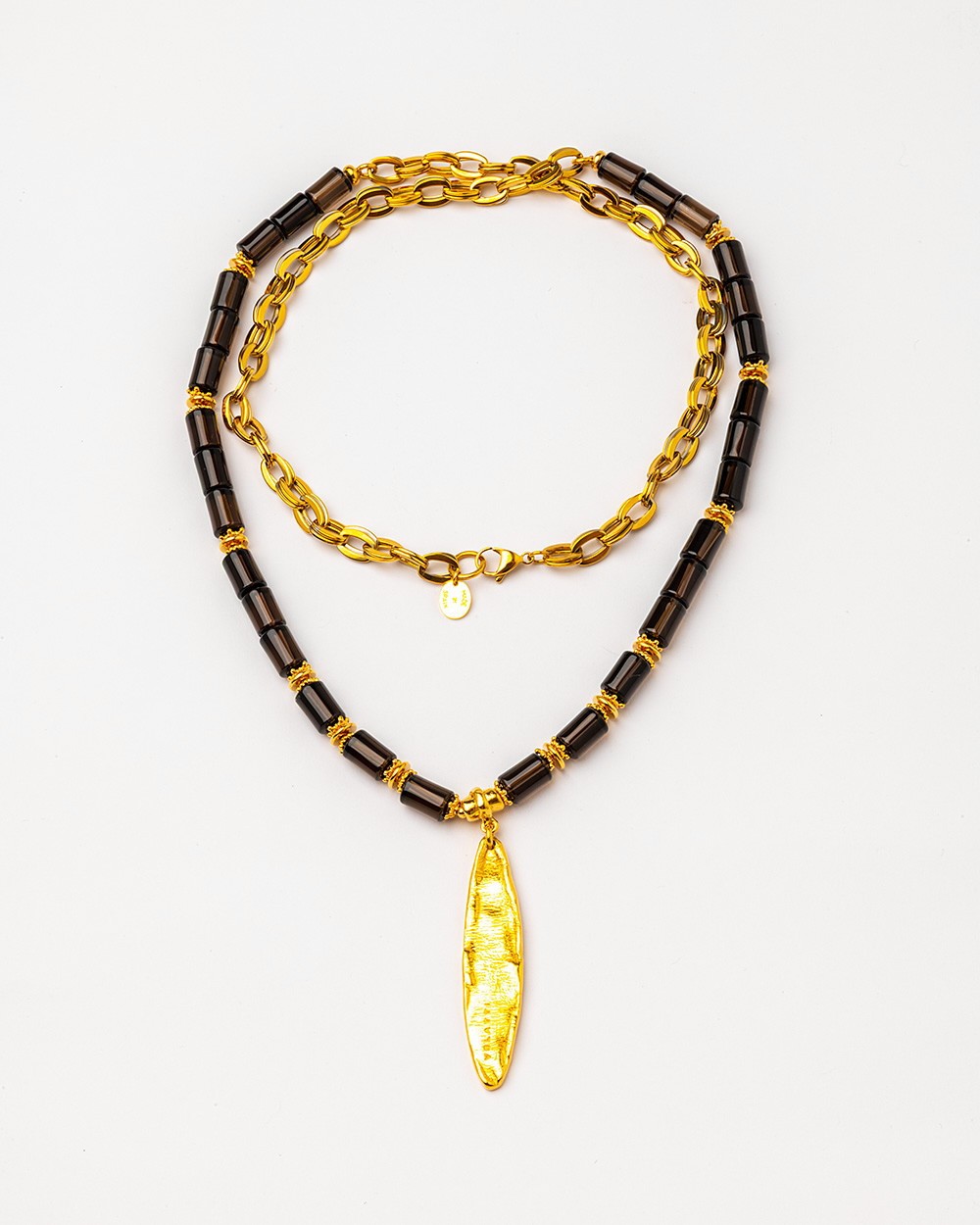 Collar largo con pieza dorada y cuarzo ahumado de Velatti