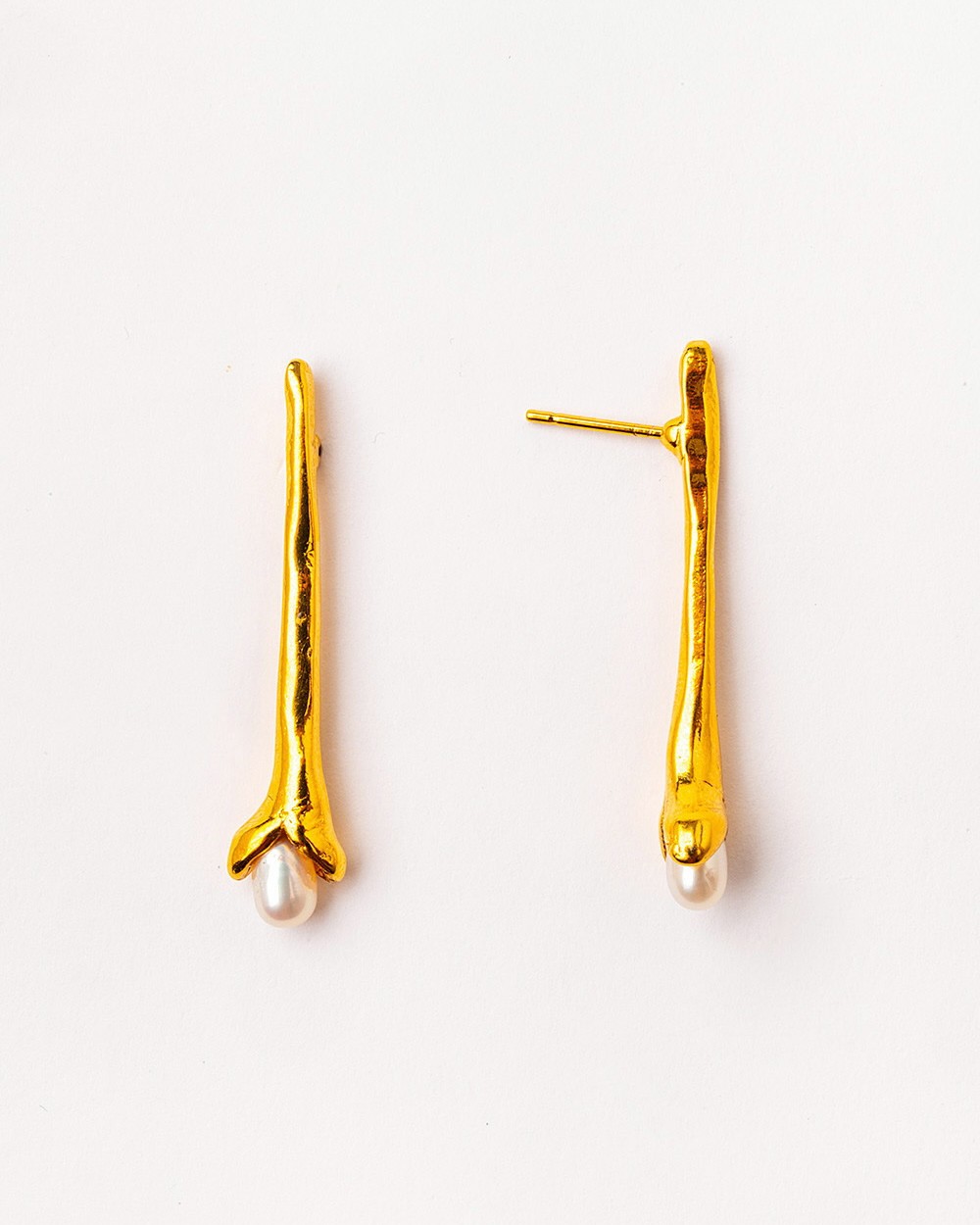 Pendientes bañados en oro de 18 kt. y última capa de 24 kt. con perlas. Tope XL con plato de 9,5mm. para una mejor sujeción.