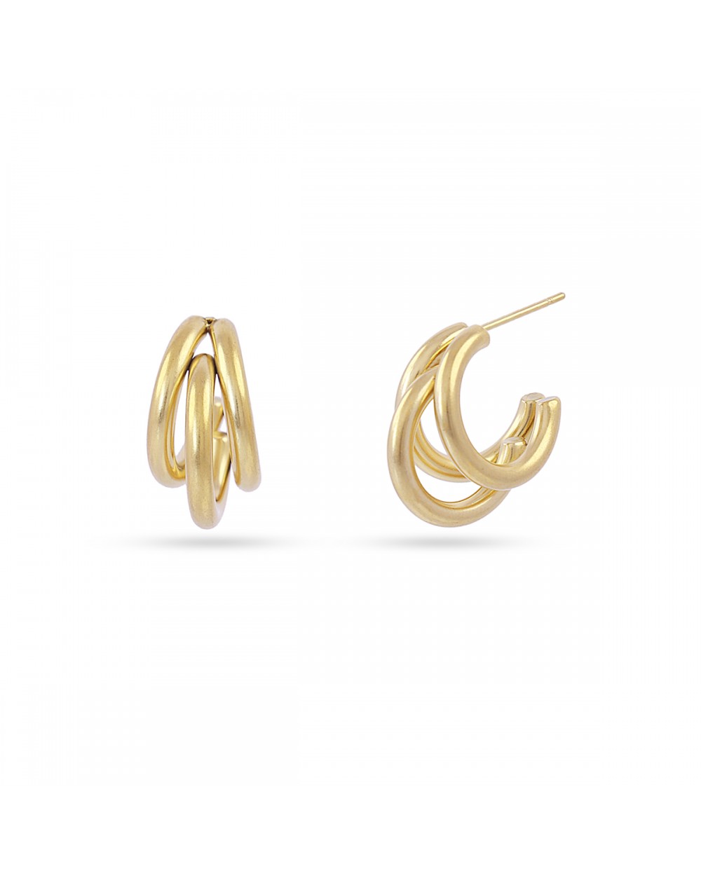 Pendientes de Anartxy tipo aro de acero quirúrgico, disponibles en dorado o plateado. Hipoalergénicos y resistentes al agua, ofrecen comodidad y un cierre a presión seguro para acompañarte en tu día a día con estilo y sin preocupaciones. Un accesorio imprescindible para quienes buscan un toque atrevido y favorecedor en su look diario.