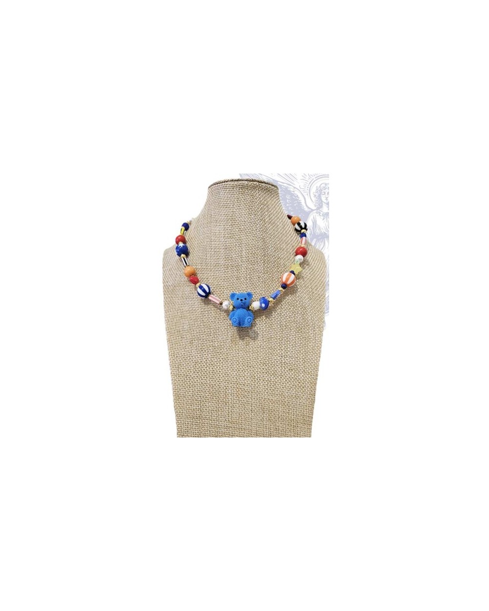 Collar bolas color y charm osito de Ssolo complementos , con charms que son amuletos que atraen las buenas vibraciones, un colgante principal en forma de osito.