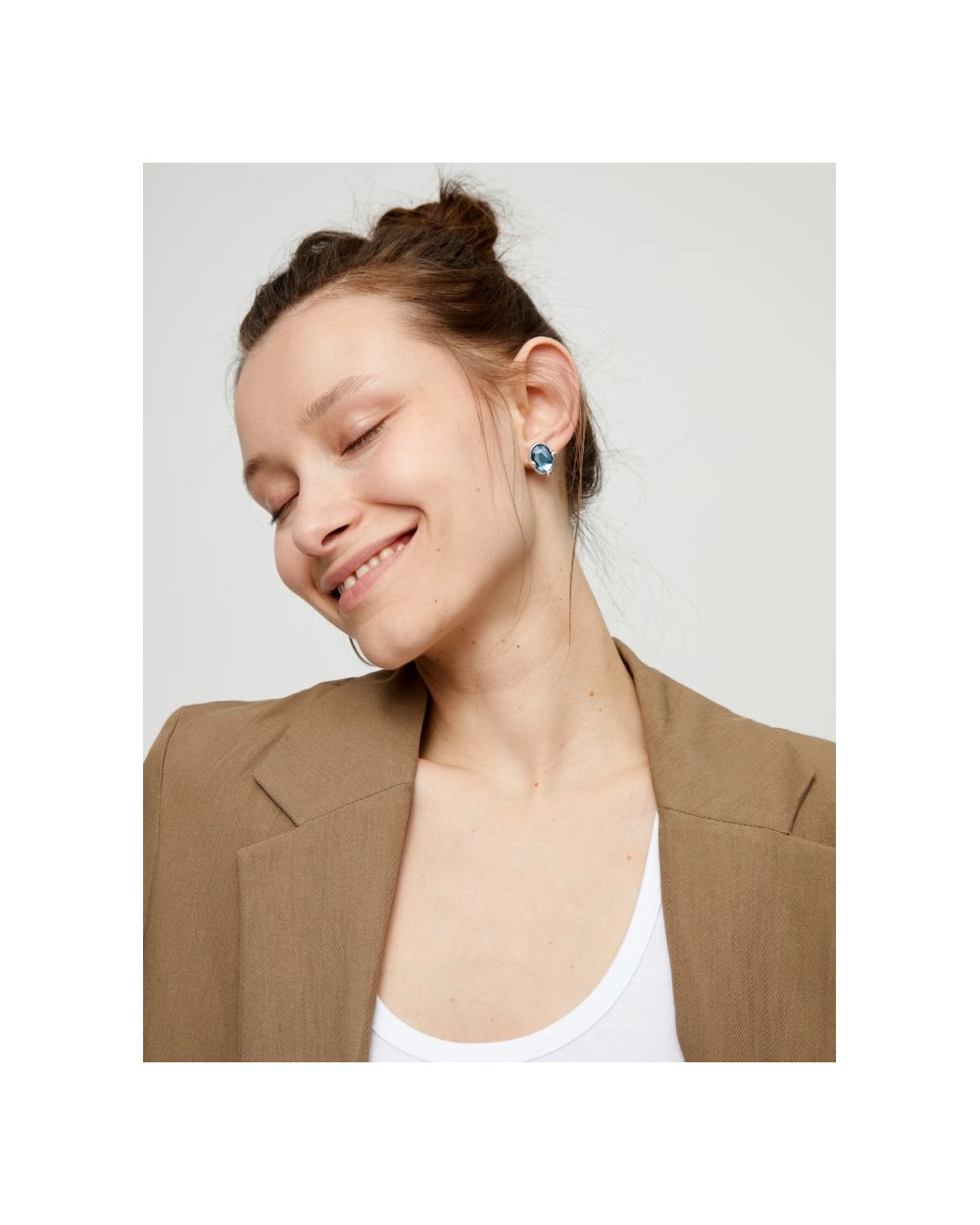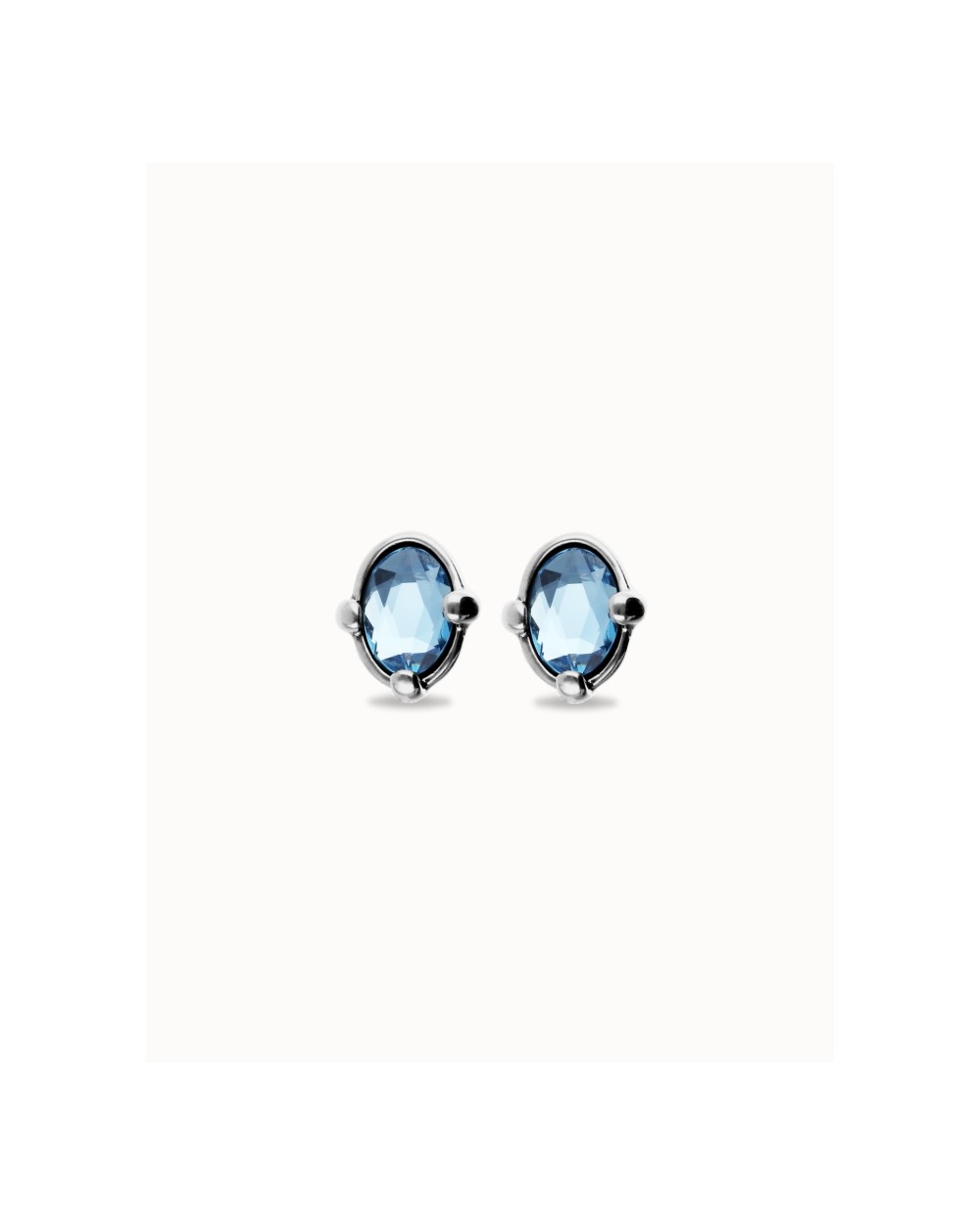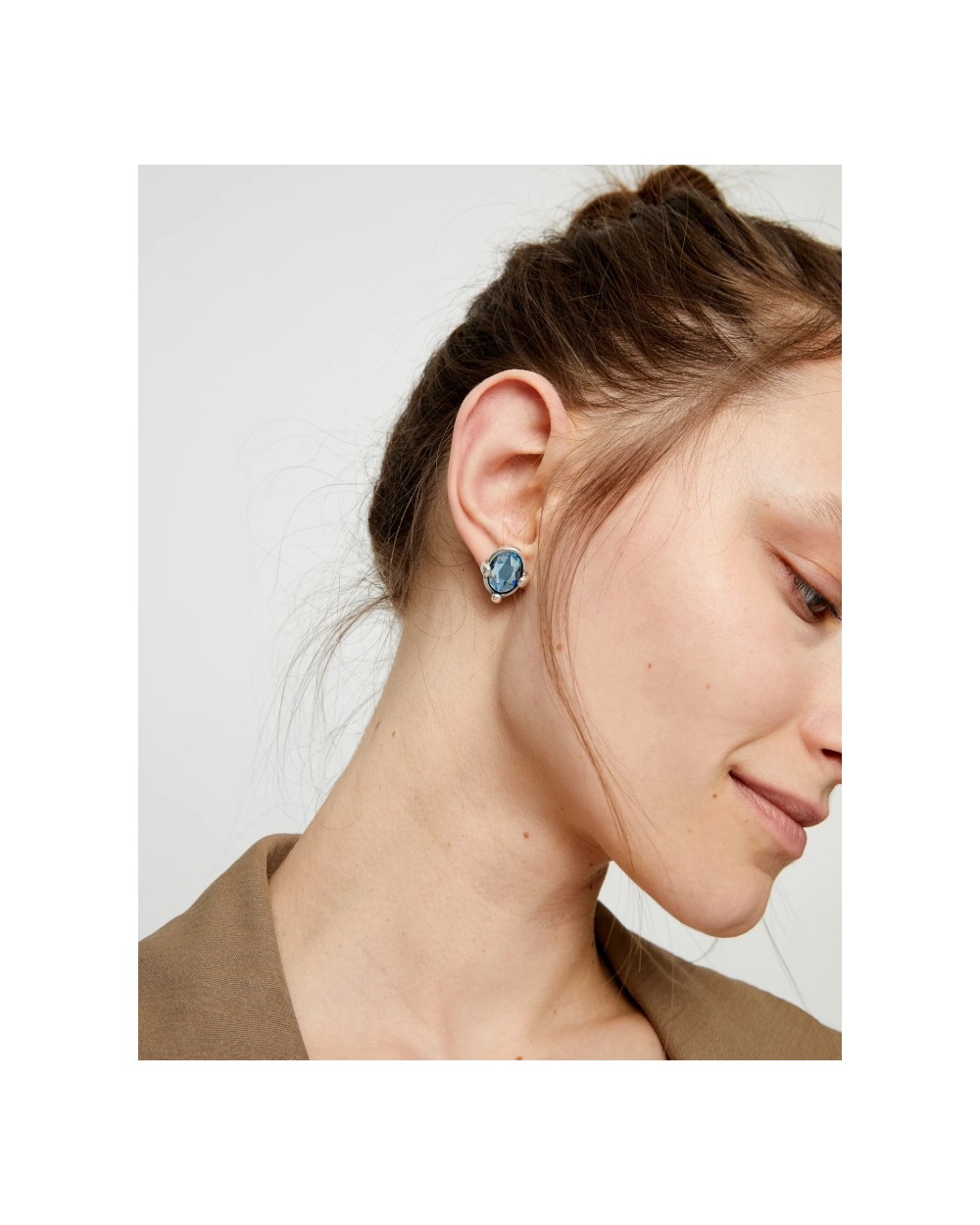 Estos pendientes de diseño capturan la esencia de la colección, donde la firmeza del metal realza la delicadeza y el brillo del cristal.