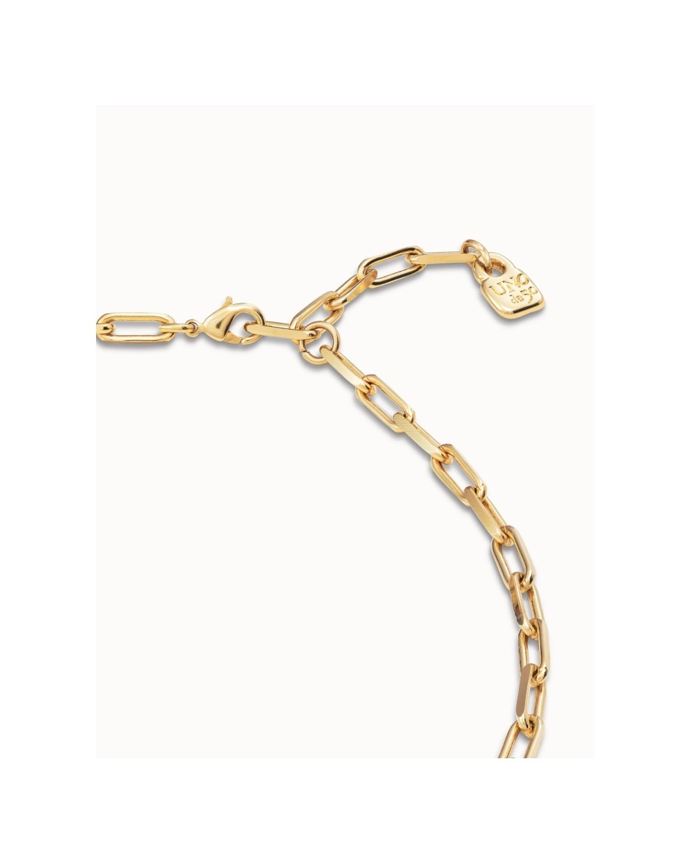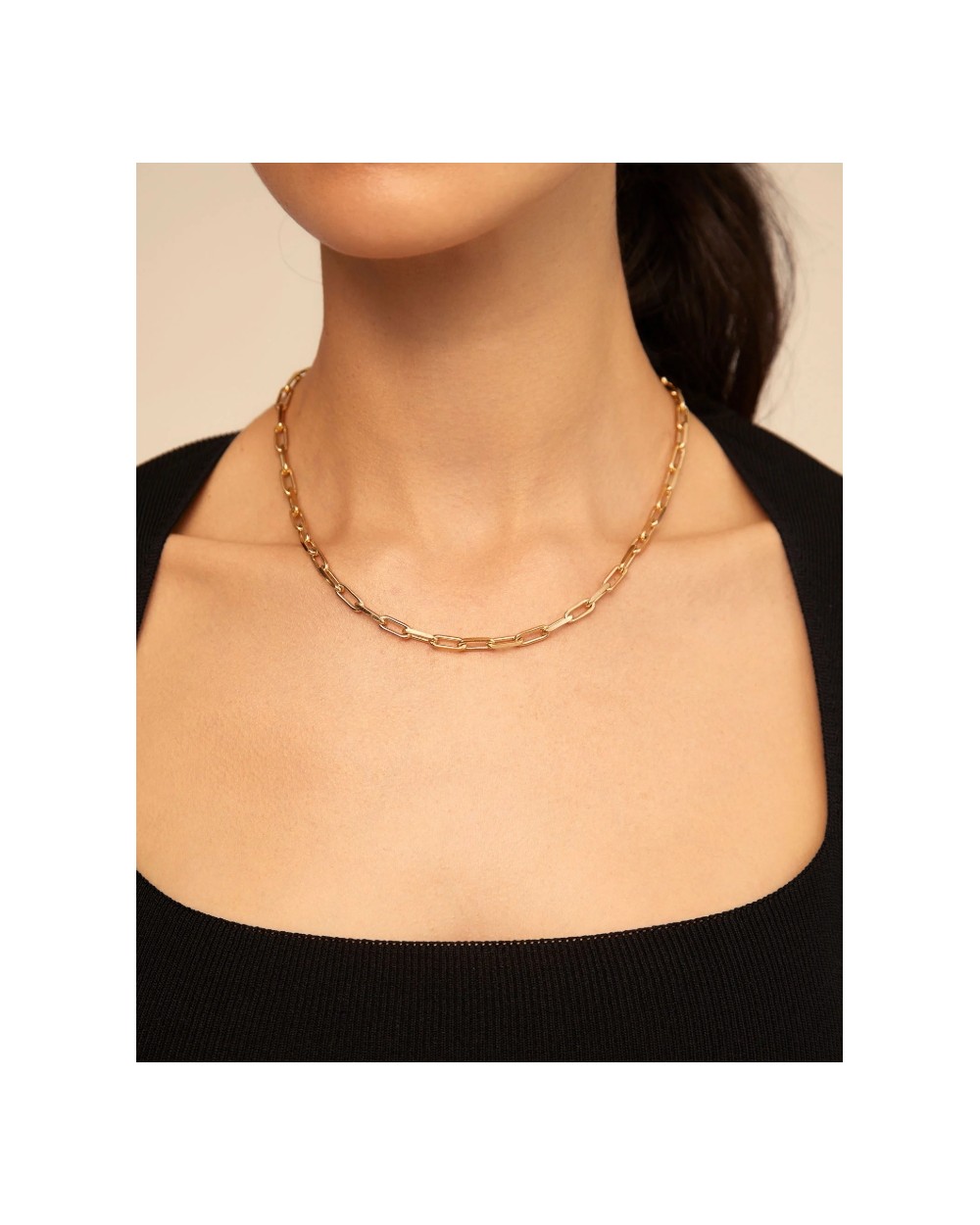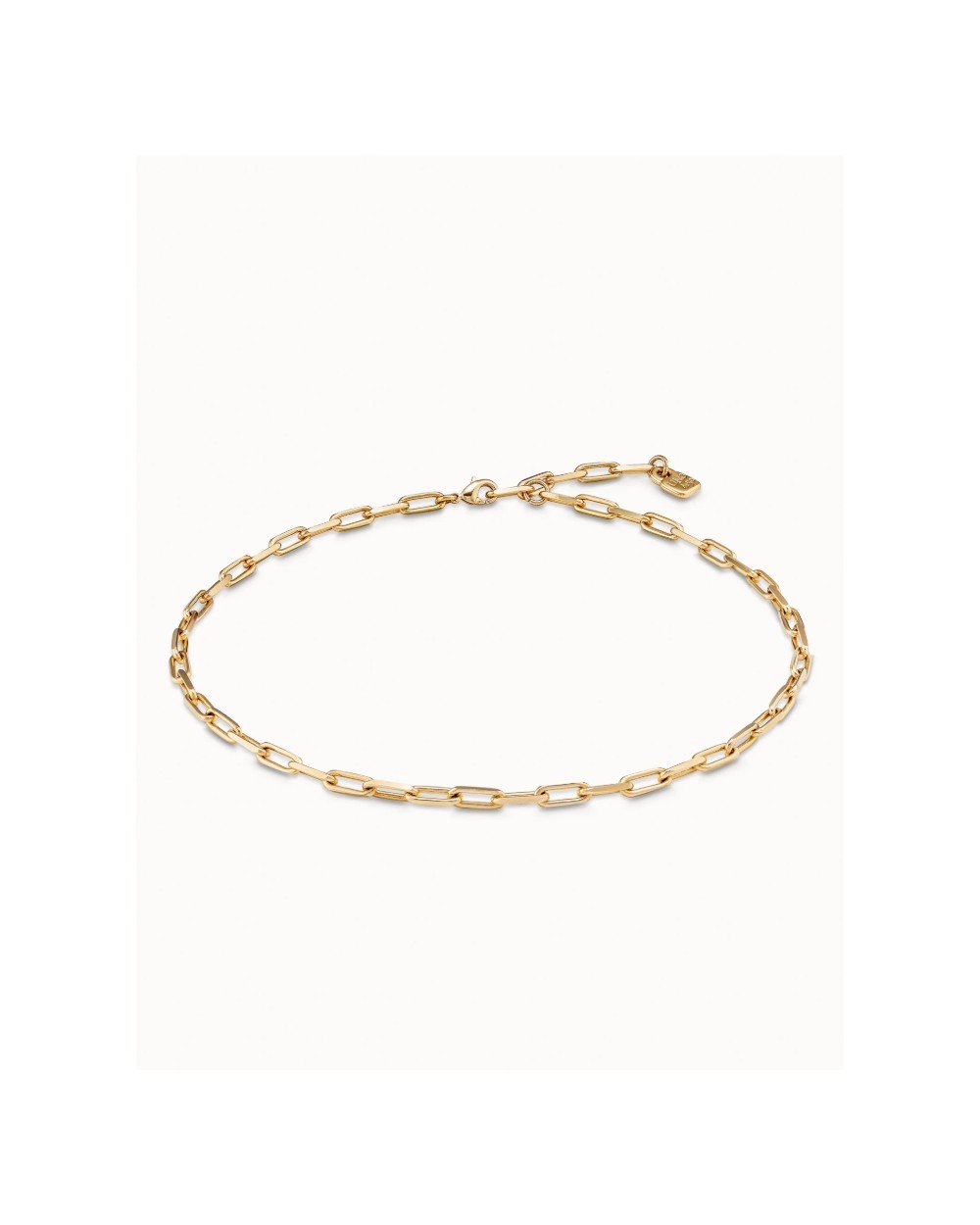 Minimalista, elegante e infinitamente combinable. Esta cadena corta con eslabones rectangulares bañados en oro de 18 quilates se ha convertido en un bestseller gracias a su versatilidad y diseño contemporáneo.