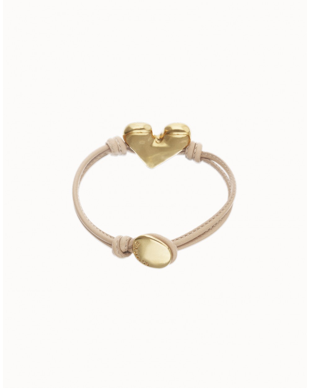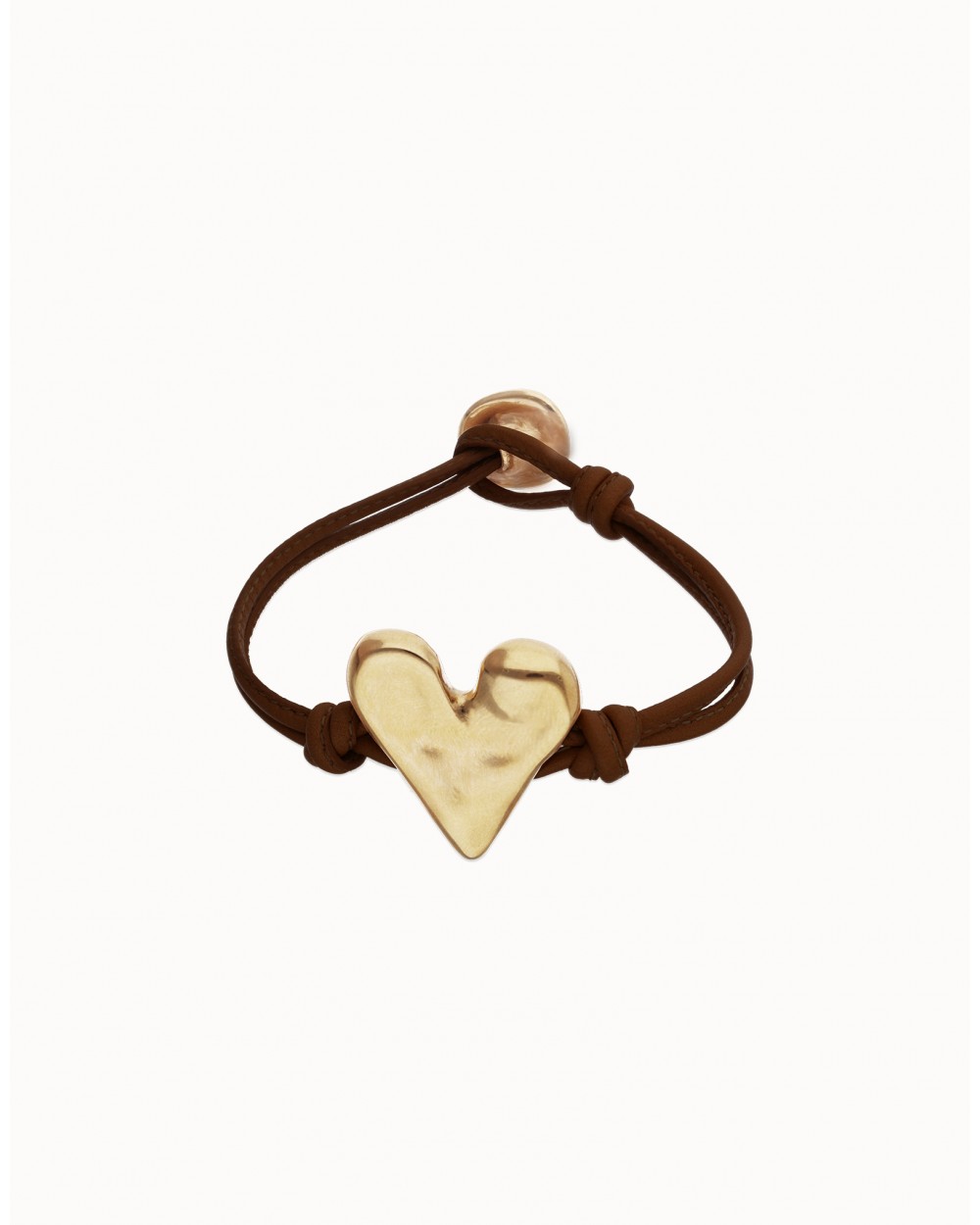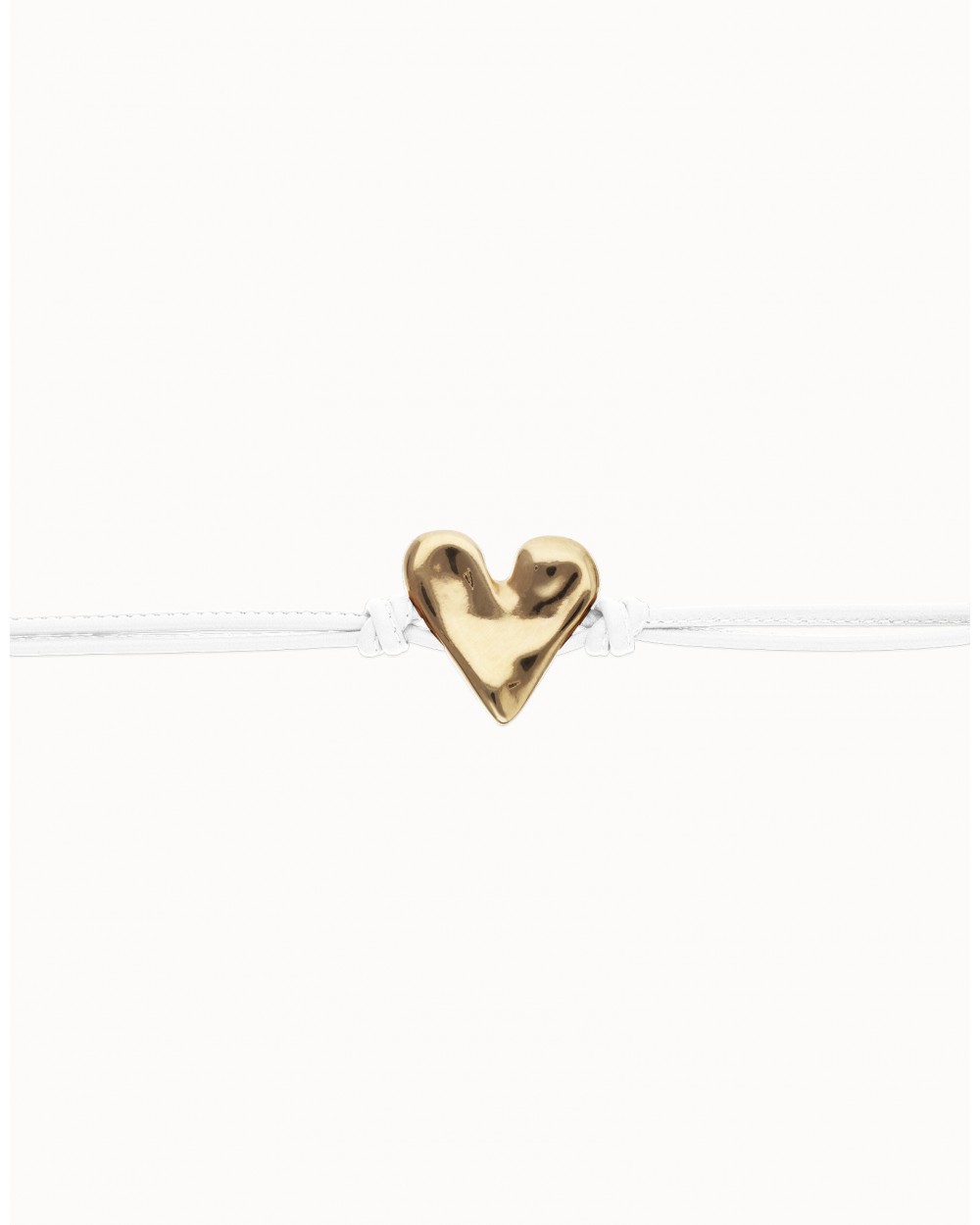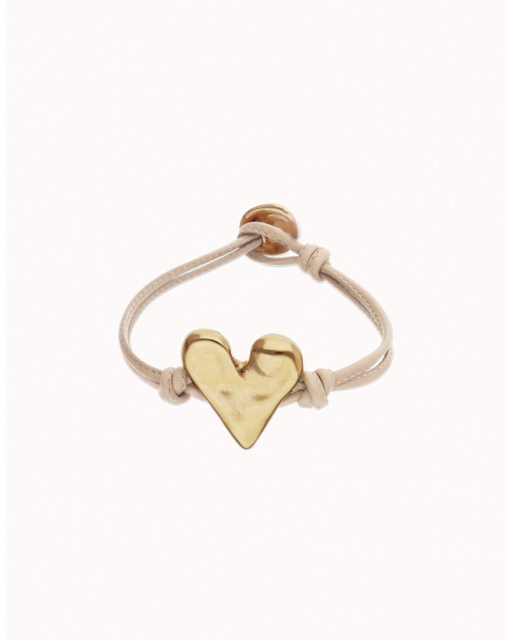 Pulsera de cuero blanco, marròn o camel con detalle de corazón bañado en oro 18k. Hecho artesanalmente en España por UNOde50. Cuando algo dentro de ti palpita con fuerza, solo hay una forma de escucharlo: dejarse llevar. La Colección Pálpito es la celebración de soltar las riendas y dejar que sea el corazón el que marque el camino. Un corazón hecho a mano, imperfecto, pero real. Porque el resultado de vivir así es un corazón esculpido con tus propias manos.