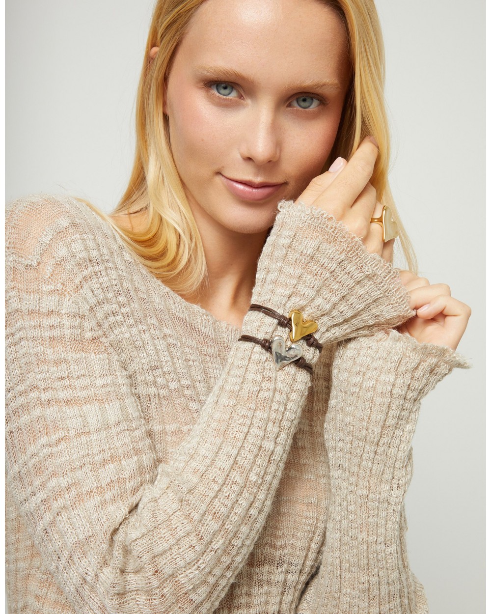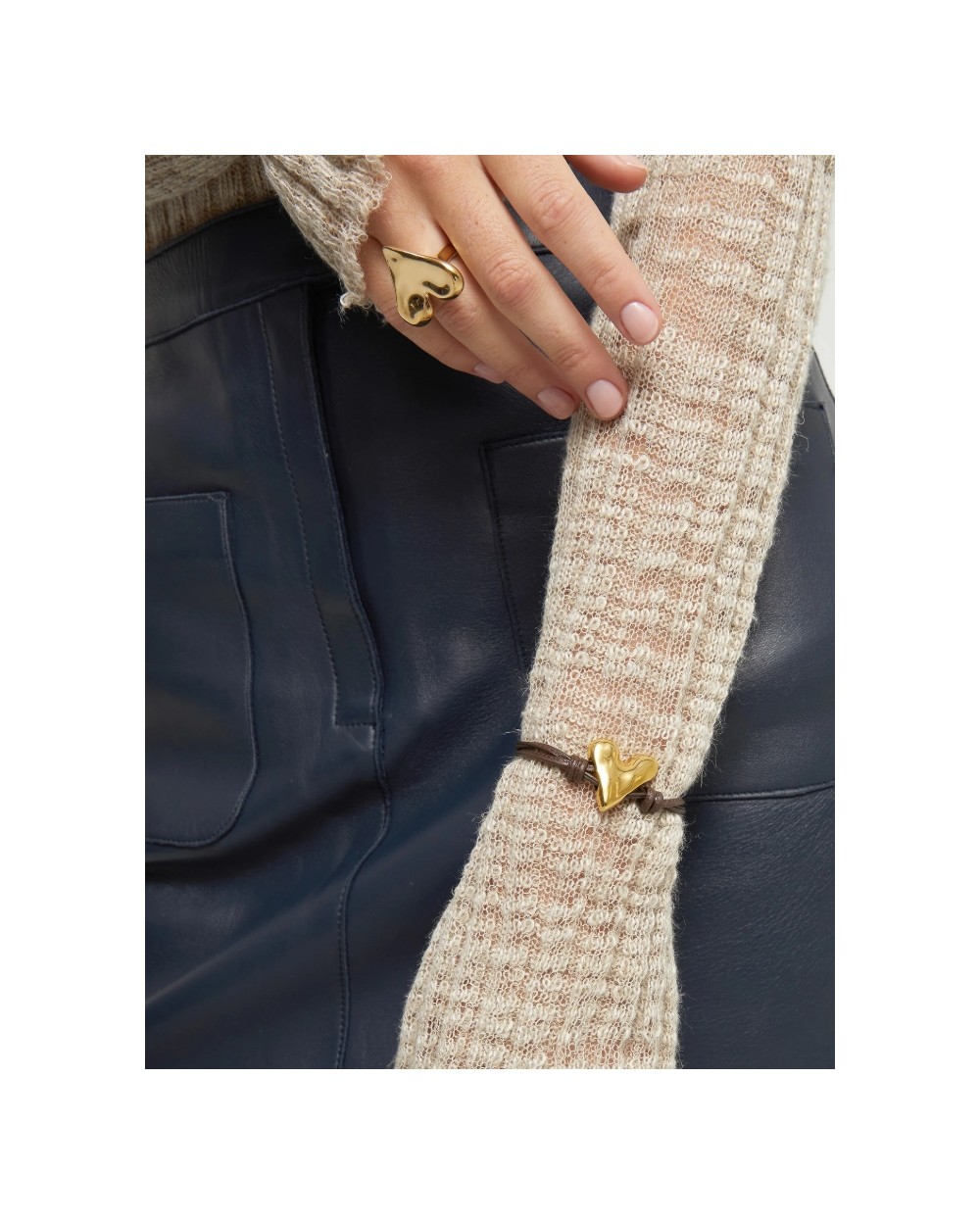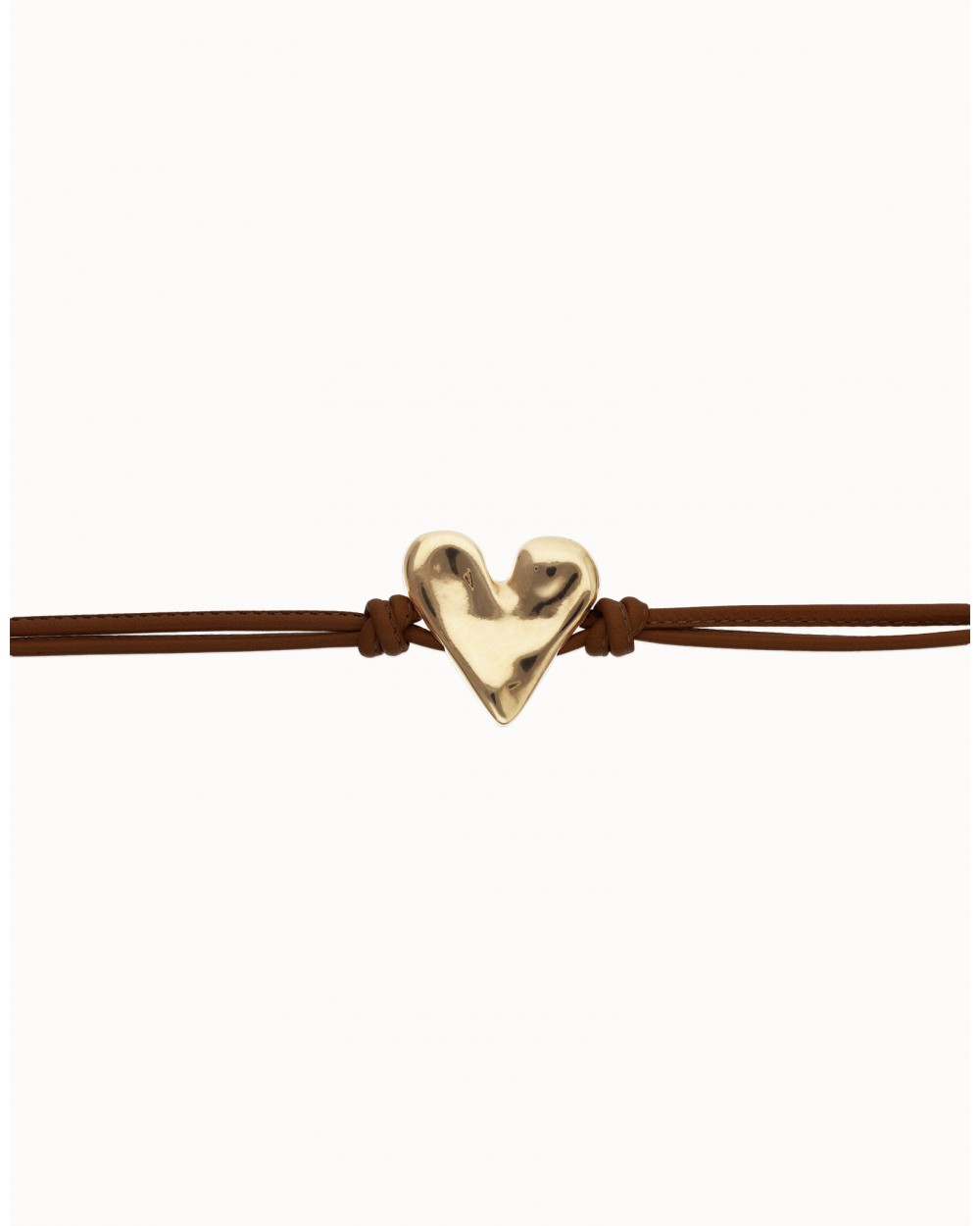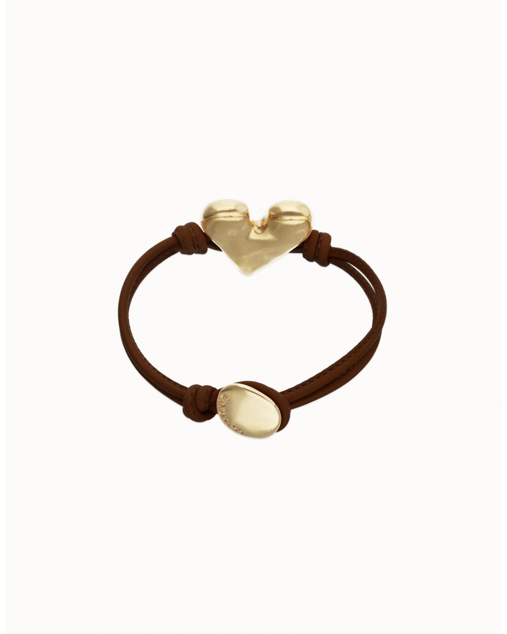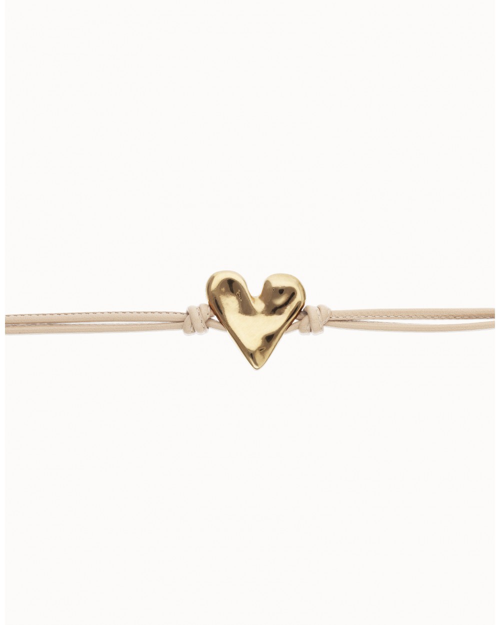 Pulsera de cuero blanco, marròn o camel con detalle de corazón bañado en oro 18k. Hecho artesanalmente en España por UNOde50. Cuando algo dentro de ti palpita con fuerza, solo hay una forma de escucharlo: dejarse llevar. La Colección Pálpito es la celebración de soltar las riendas y dejar que sea el corazón el que marque el camino. Un corazón hecho a mano, imperfecto, pero real. Porque el resultado de vivir así es un corazón esculpido con tus propias manos.