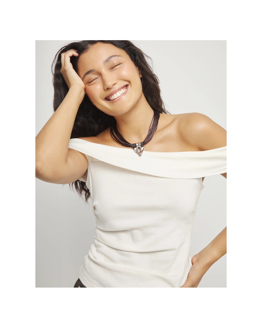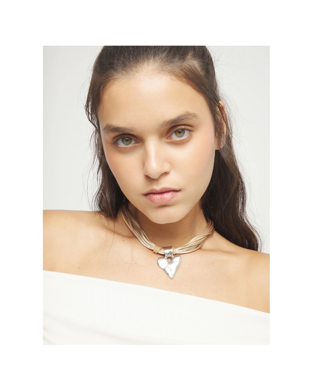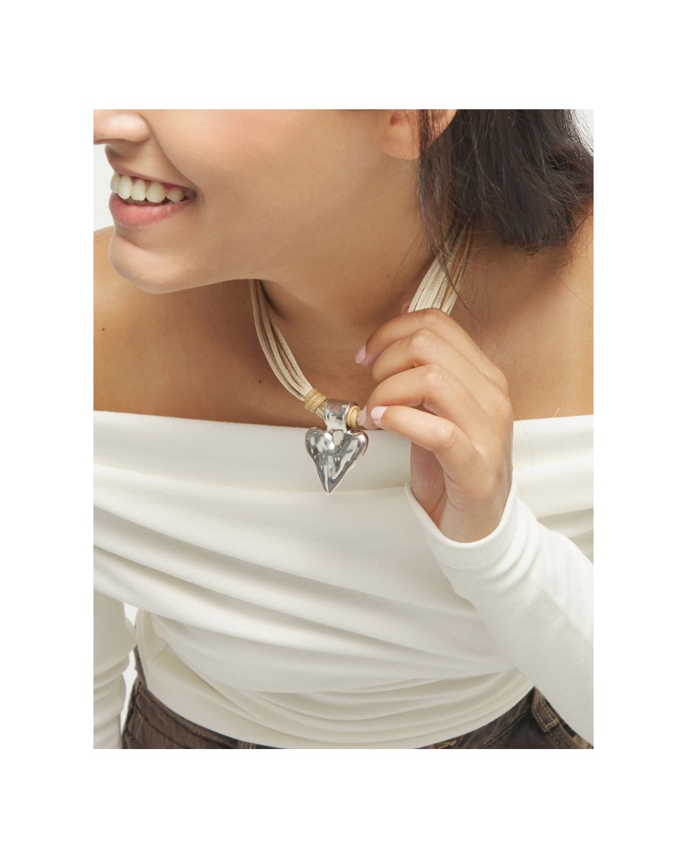 Collar hilo de seda camel con detalle de corazón bañado en plata. Un corazón hecho a mano, imperfecto, pero real. Porque el resultado de vivir así es un corazón esculpido con tus propias manos.