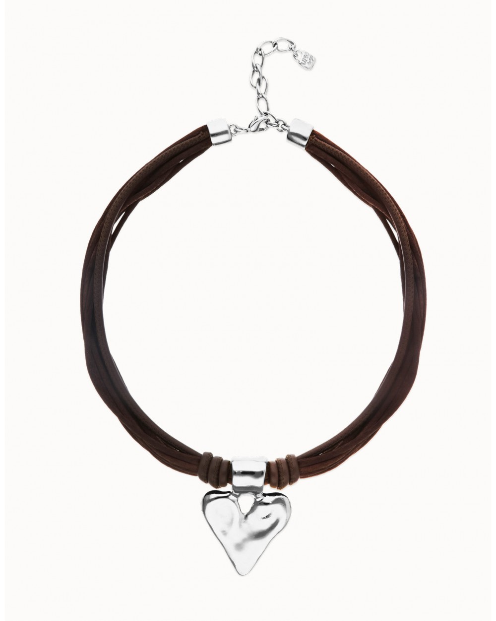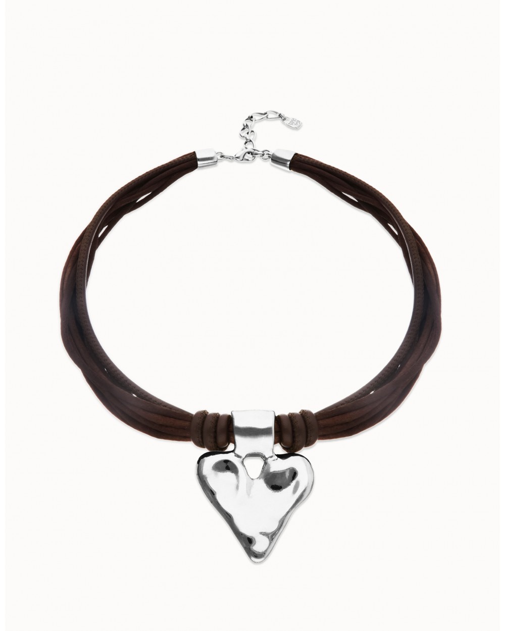 Collar hilo seda corazòn baño plata UNOde50