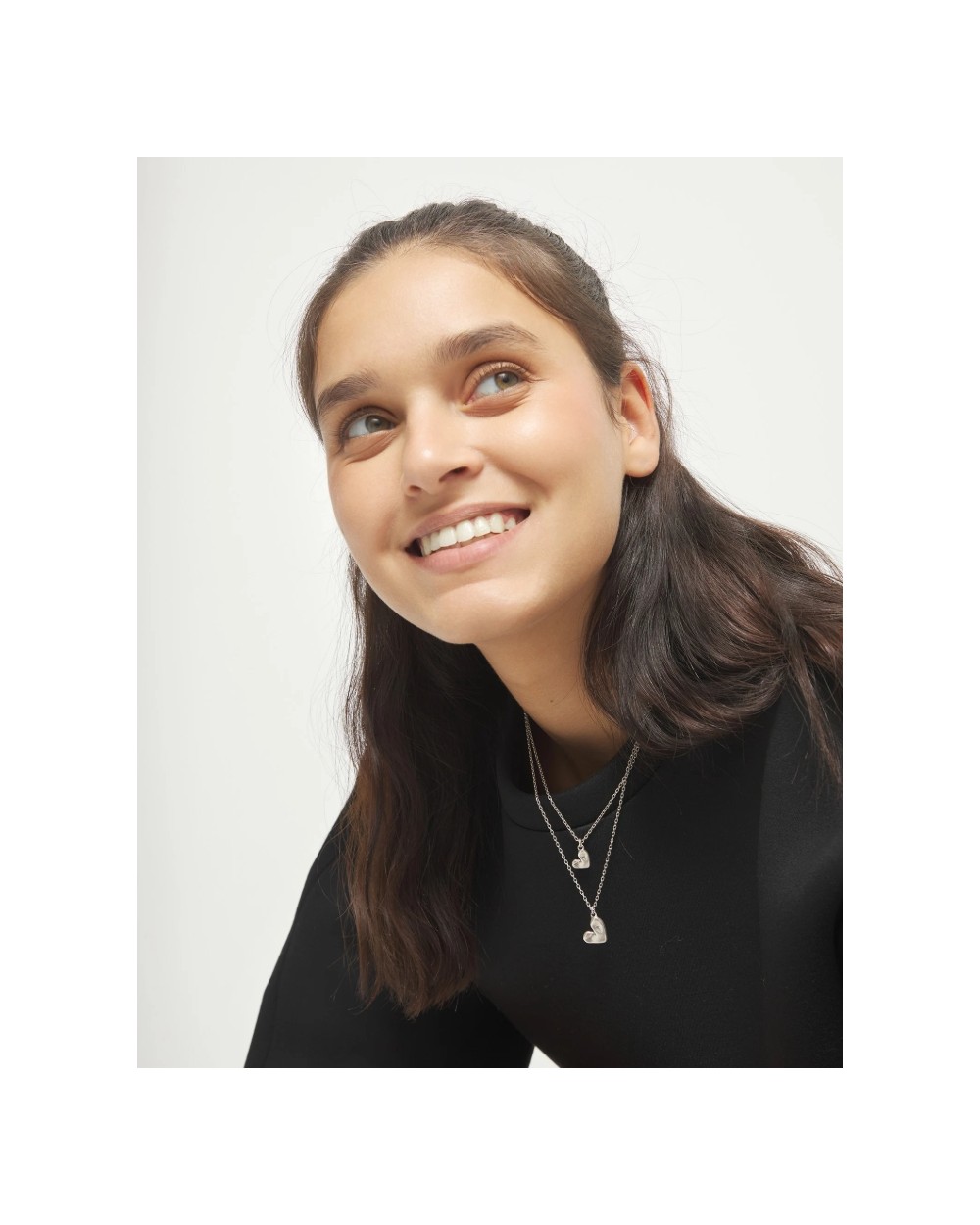 Collar doble bañado en plata de ley con dos corazones. Cuando algo dentro de ti palpita con fuerza, solo hay una forma de escucharlo: dejarse llevar. La Colección Pálpito es la celebración de soltar las riendas y dejar que sea el corazón el que marque el camino. Un corazón hecho a mano, imperfecto, pero real. Porque el resultado de vivir así es un corazón esculpido con tus propias manos.