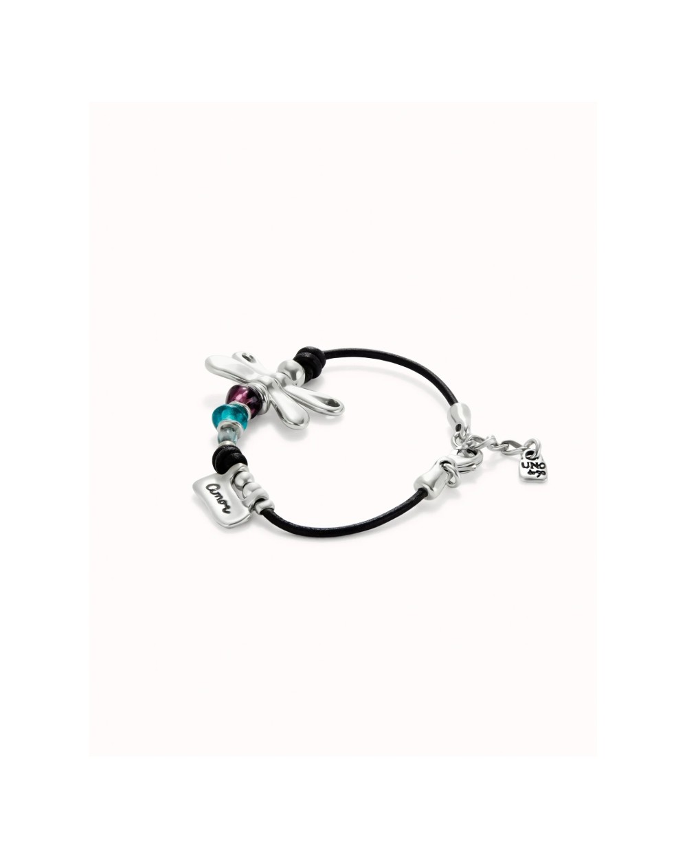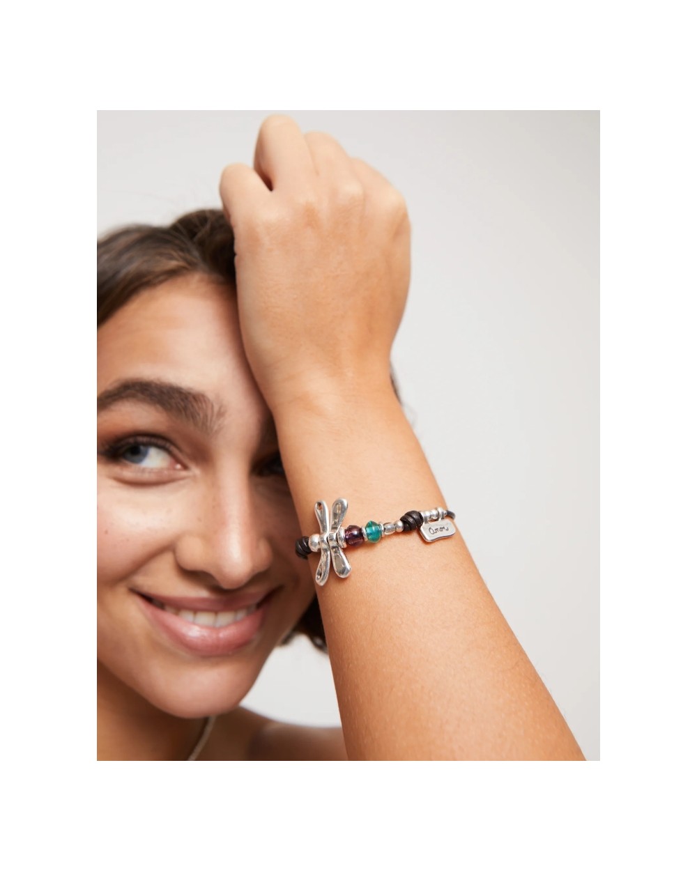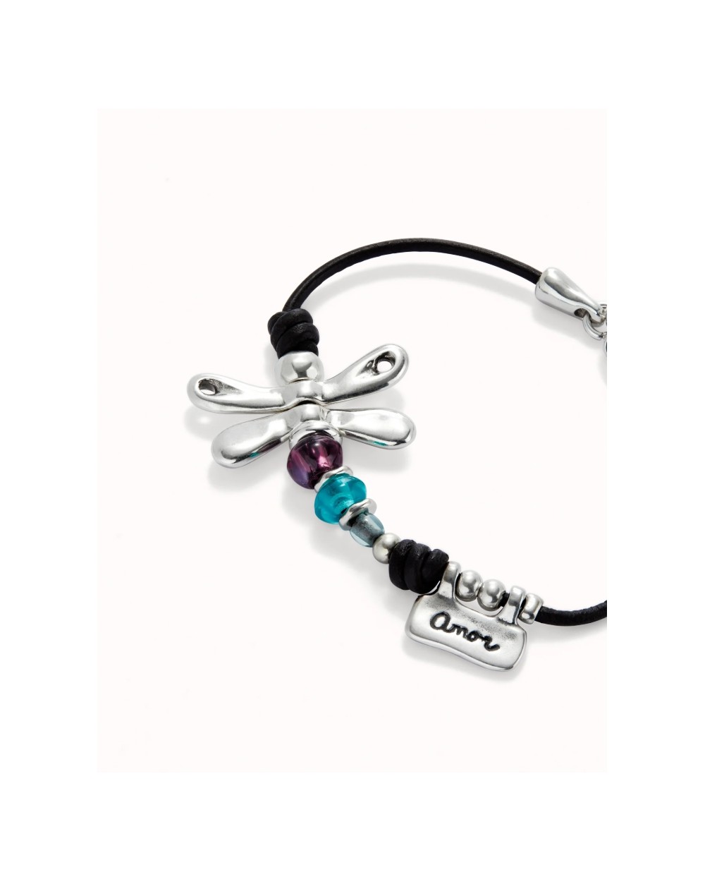 Pulsera con libelula bañada en plata de ley y cristal facetado con mensaje "amor" Elaborado en España, en un proceso 100% artesanal. Piezas dónde la libélula se convierte en la gran apuesta de la temporada, auténticos símbolos de rebeldía combinados con cuero, cristales de colores o eslabones. Descubre la colección ser rebelde