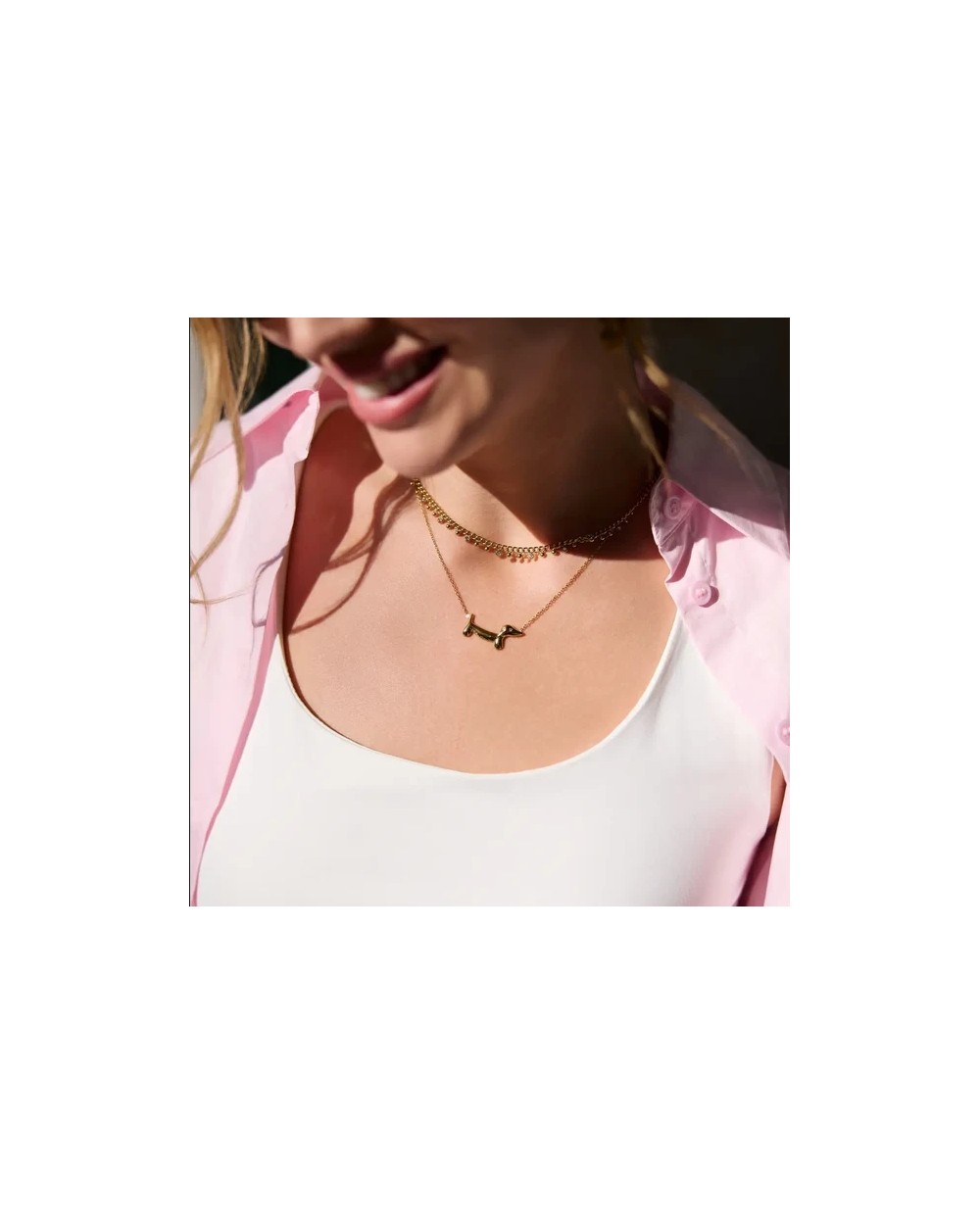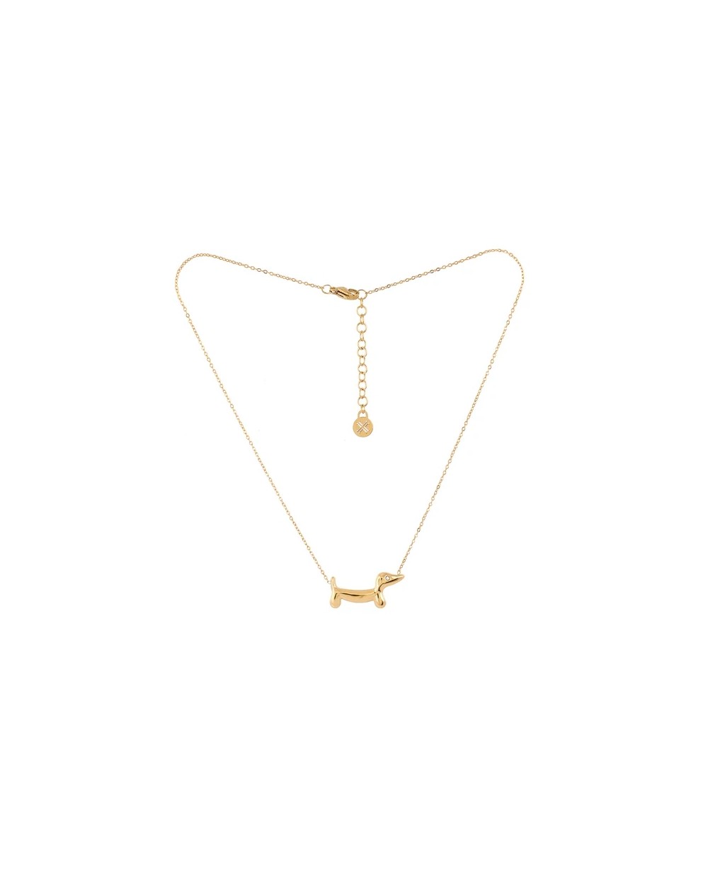 Lleva tu pasión por los teckels siempre contigo con este Collar Essentials Teckel, inspirado en el icónico perro salchicha. Fabricado en acero quirúrgico color dorado, es hipoalergénico y perfecto para combinar con su anillo a juego. Un diseño delicado, original y lleno de personalidad para quienes saben que el amor por los perros también se lleva como joya.