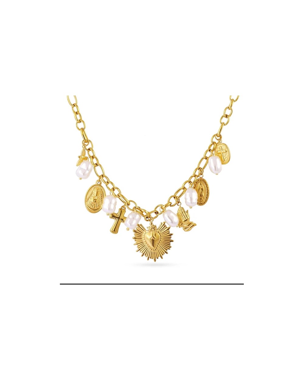 Protección espiritual en tu día a día. El Collar Faith Guardian diseñado con materiales hipoalergénicos, es seguro para pieles sensibles y cómodo de llevar durante horas. Su acabado resistente al agua mantiene el brillo y la integridad del símbolo religioso intactos, incluso en condiciones cotidianas desafiantes. La simbología sagrada grabada transmite fe y propósito, convirtiéndolo en un amuleto personal que acompaña tus momentos más importantes. Perfecto para quienes buscan conectar con sus creencias sin comprometer la durabilidad ni el confort. ¡Combínalo con su pulsera a juego!