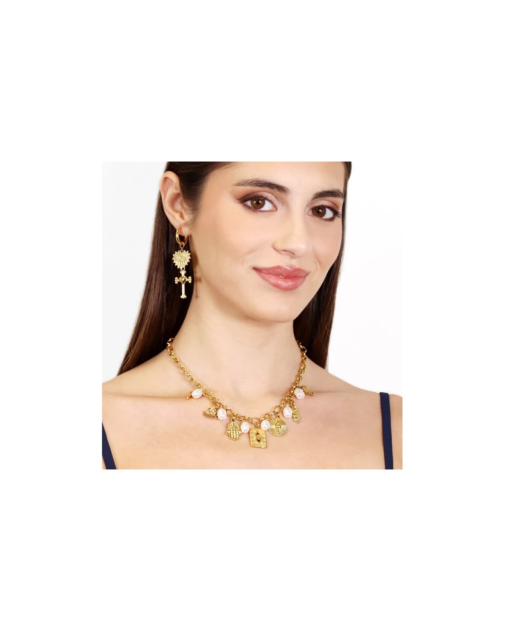 Descubre la elegancia mística con nuestro Collar Faith Celestia, diseñado para quienes buscan conexión espiritual en su joyería diaria. Hipoalergénico y resistente al agua, este collar combina durabilidad con simbolismo celestial que refleja tu esencia interior. Sus detalles místicos te acompañarán en cada momento, protegiéndote con gracia y estilo. Perfecto para quien desea llevar significado en el cuello. ¡Combínalo con su pulsera a juego!
