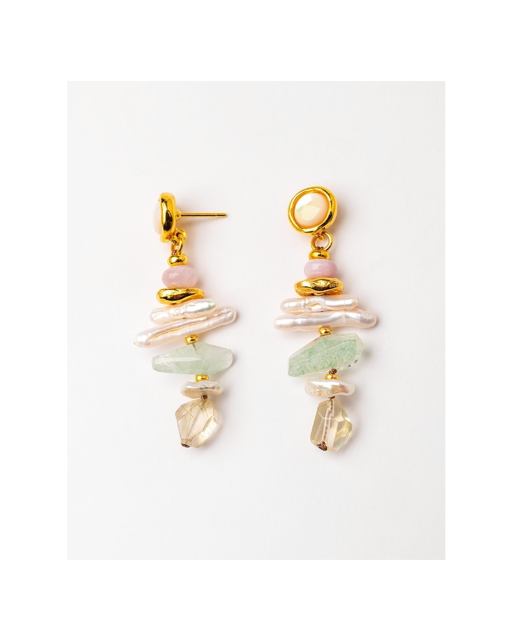 - Pendientes con gemas bañados en oro de 18 kt. y última capa de 24 kt. Tope XL con plato de 9,5mm. para una mejor sujeción. Hechos a mano 100% en España.