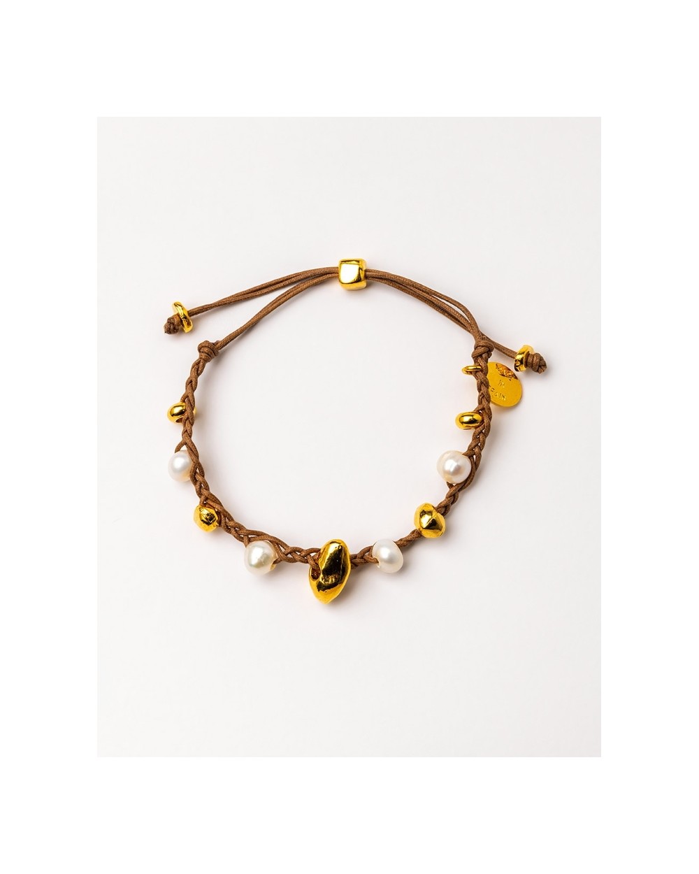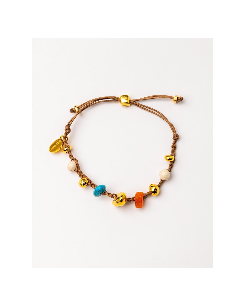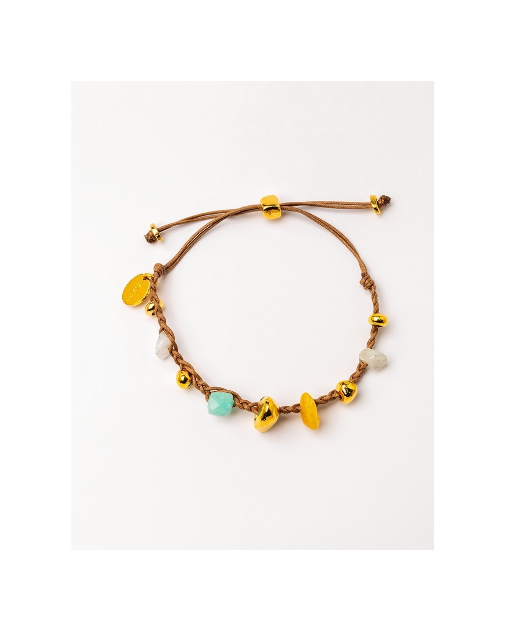 Pulsera trenzada a mano con gemas y piezas bañadas en oro de 18 kt. y la última capa de 24 kt. Hecho a mano 100% en España.
