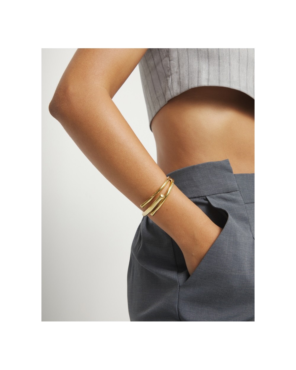 Pulsera rígida bañada en ORO 24K de ley con tres formas orgánicas entrelazadas que transmiten equilibrio y armonía.