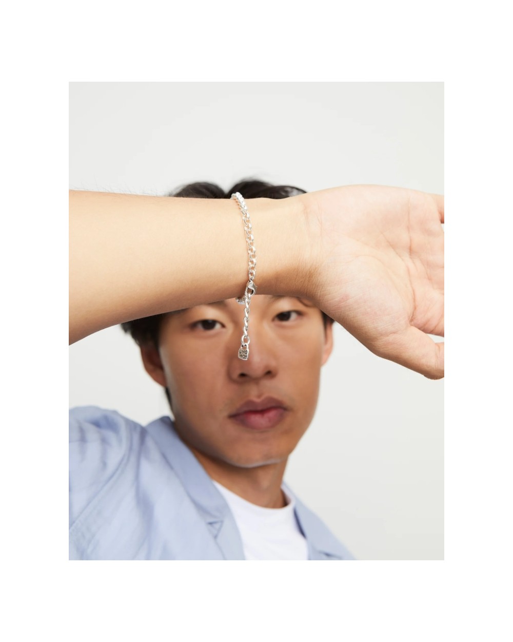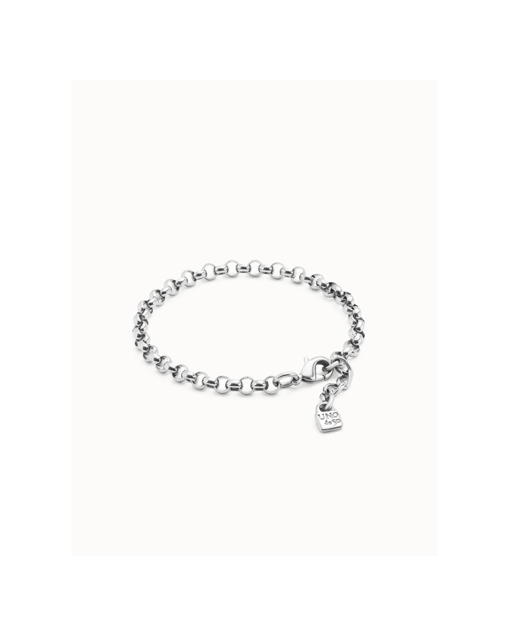 Pulsera bañada en plata destaca por su diseño limpio y atemporal, con eslabones redondeados que aportan movimiento y brillo.