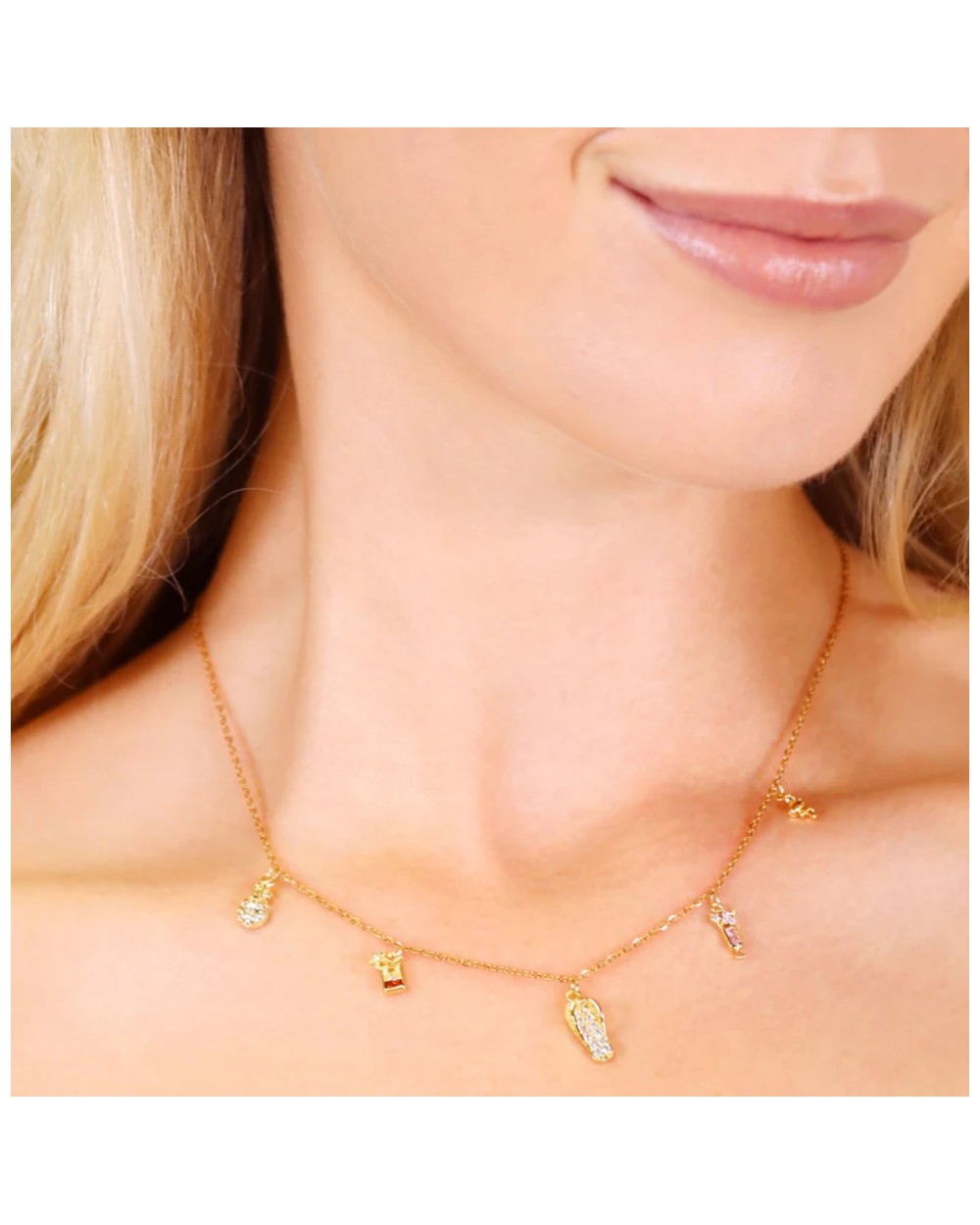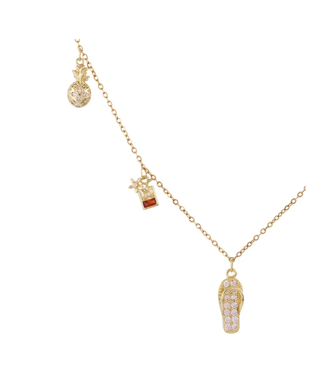 Descubre el Collar Shine Summery. Elaborado en acero quirúrgico hipoalergénico, este collar presenta una cadena fina adornada con abalorios inspirados en las vacaciones de verano y circonitas que brillan con cada movimiento. Resistente al agua, es tu compañero perfecto para cualquier aventura. La cadena de extensión ajustable se adapta a tu comodidad, mientras su diseño chic refleja tu personalidad única y sigue las tendencias del momento. Completa tu estilo con la pulsera a juego disponible. Lujo accesible que no compromete ni tu piel ni tu estilo.