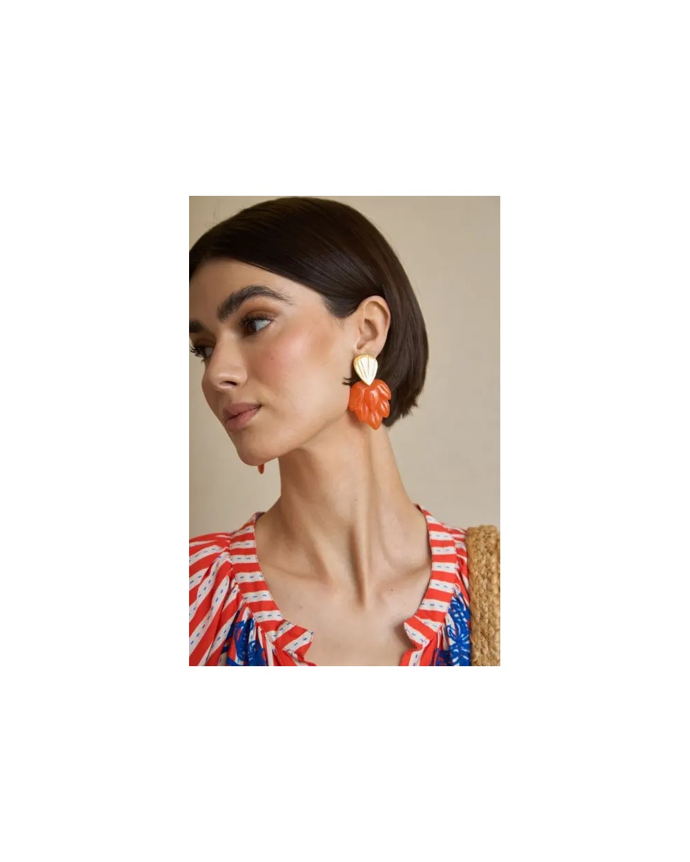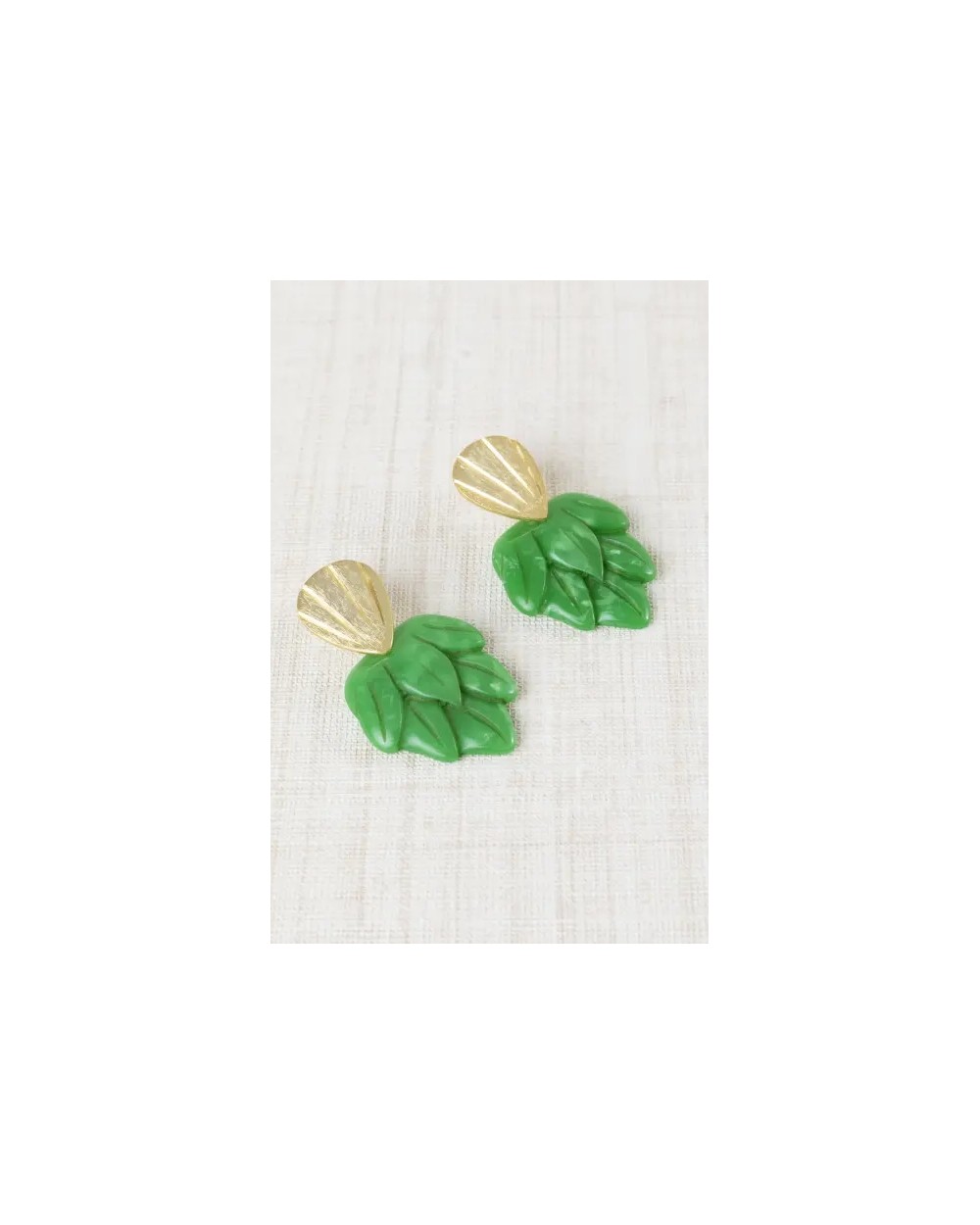 Pendientes con diseño de hojas elaboradas en resina y detalle superior metálico. Un estilo ligero y elegante con inspiración natural, ideal para aportar un toque original y sofisticado al look. -