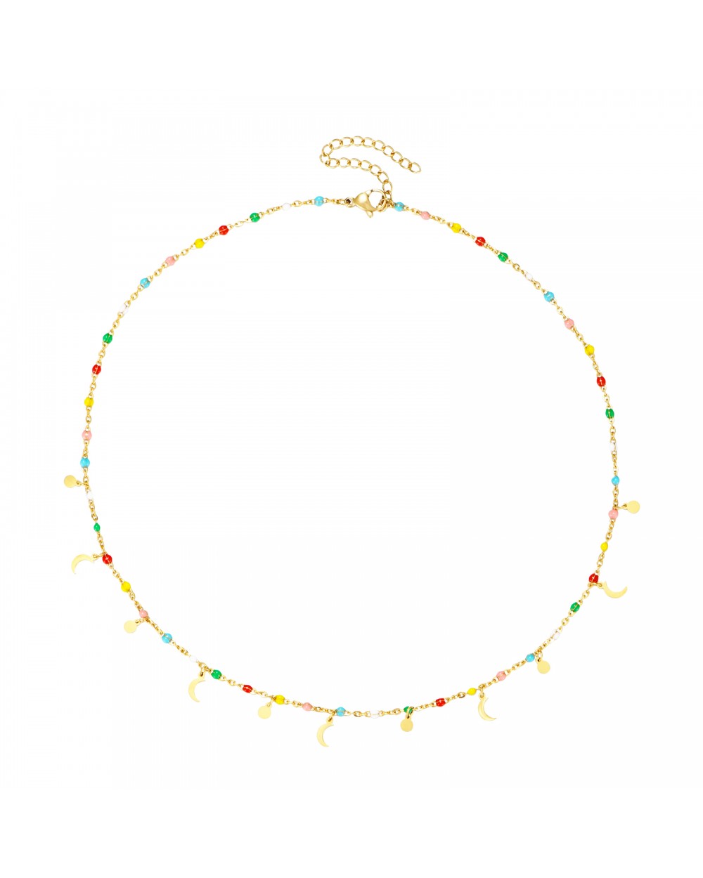 Collar de acero esmaltado multicolor con charm de lunas disponible en acabado dorado.