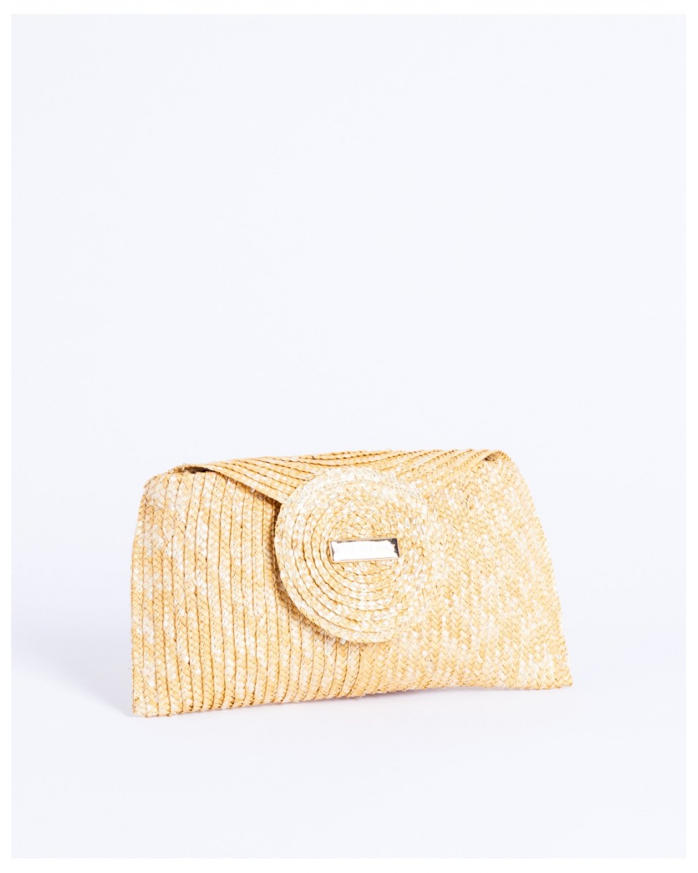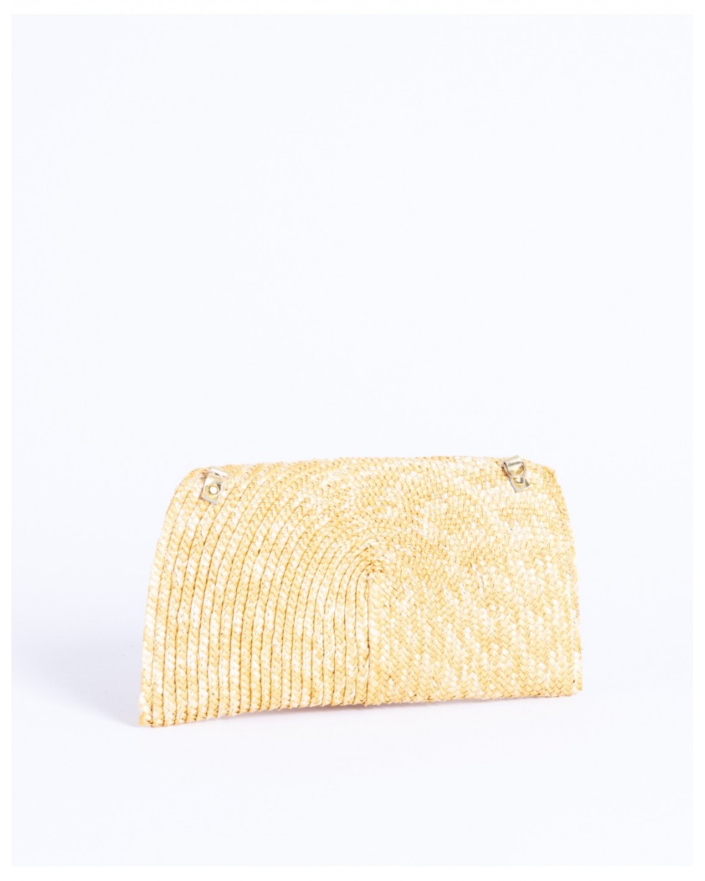 Cartera de mano, cierra con solapa con imàn. Asa con cadena dorada extraìble.
