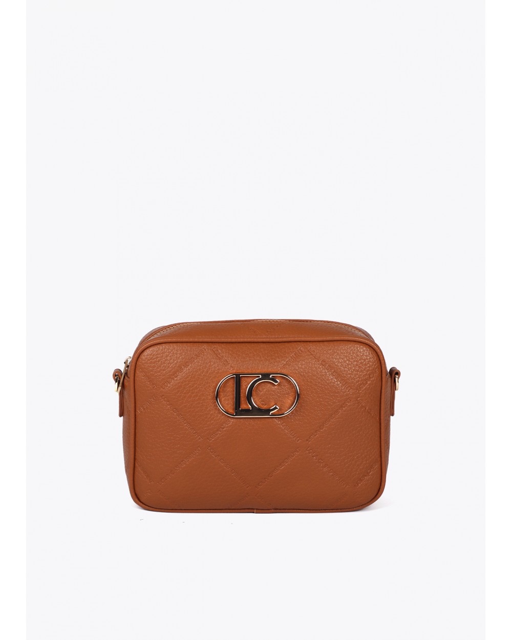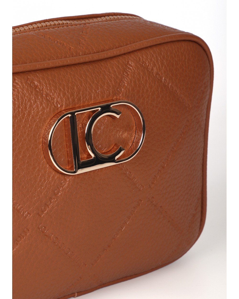 Bolso bandolera efecto piel con logo monograma de rombos. Tiene el logo LC en metal dorado ovalado en la parte frontal, cierre con cremallera y trae dos correas ajustables , una en el mismo tono y otra logotipada , varios compartimentos en el interior.