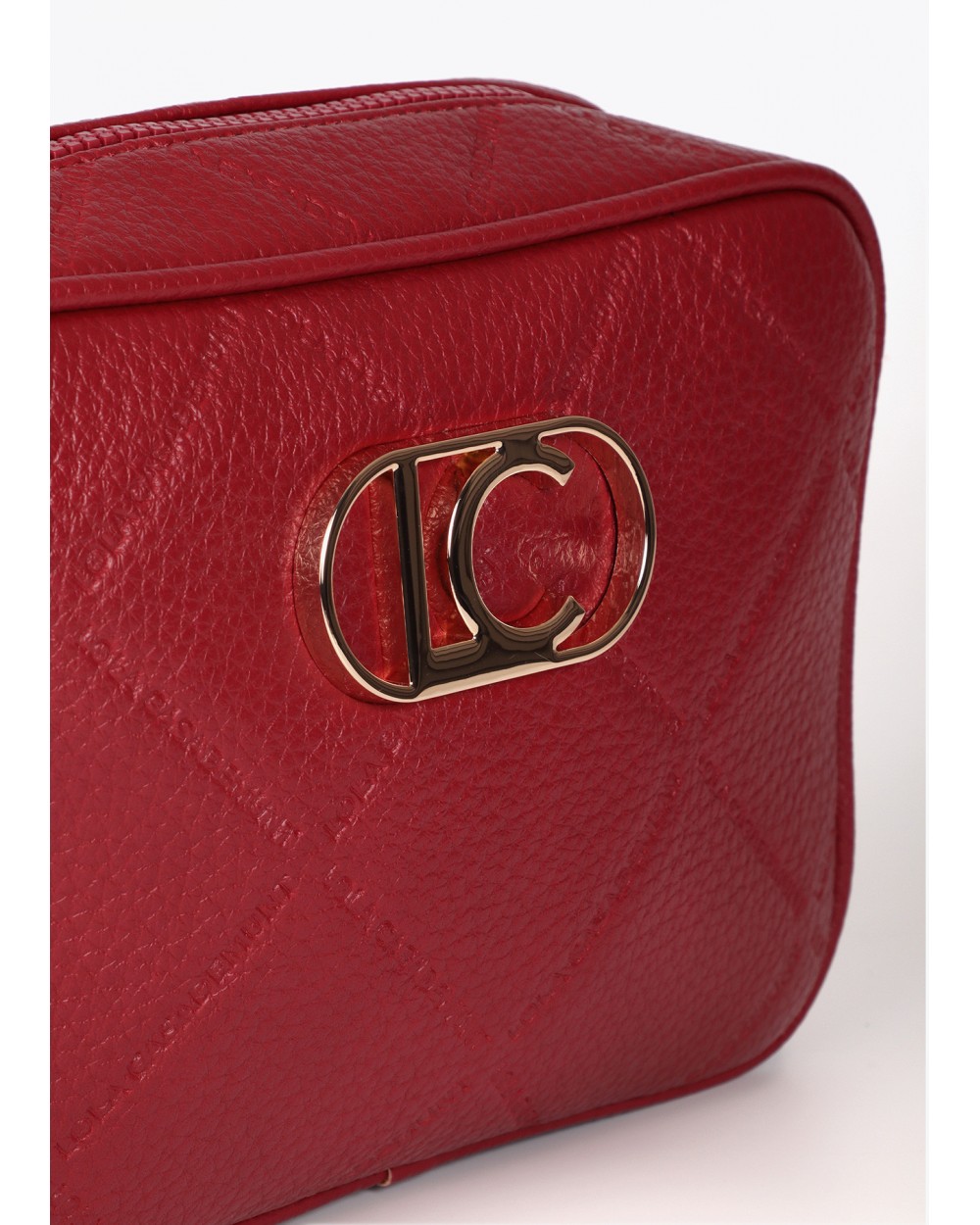 Bolso bandolera efecto piel con logo monograma de rombos. Tiene el logo LC en metal dorado ovalado en la parte frontal, cierre con cremallera y trae dos correas ajustables , una en el mismo tono y otra logotipada , varios compartimentos en el interior.