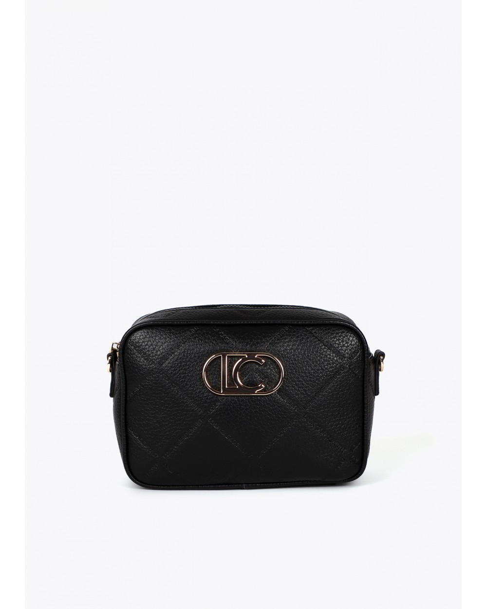 Bolso bandolera efecto piel con logo monograma de rombos. Tiene el logo LC en metal dorado ovalado en la parte frontal, cierre con cremallera y trae dos correas ajustables , una en el mismo tono y otra logotipada , varios compartimentos en el interior.
